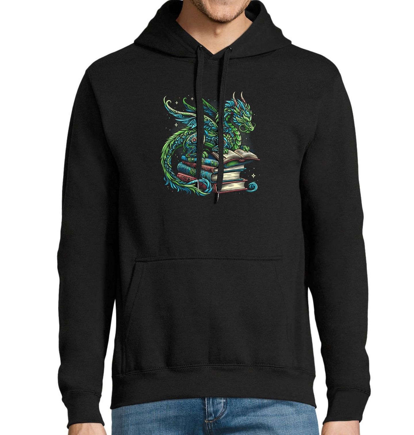 Pánská mikina Čtenář z Dračí říše. Tento kouzelný motiv zachycuje jedinečný okamžik, kdy se drak ponoří do světa fantazie a čte knihu. Každá kniha ukrývá tajemství, každá stránka je kousek magie, a právě tento drak je jejich moudrým strážcem. Bohatá barevnost a ornamentální styl dělají z ilustrace skutečné umělecké dílo, které potěší každého fanouška fantasy, čtení i mytologie.