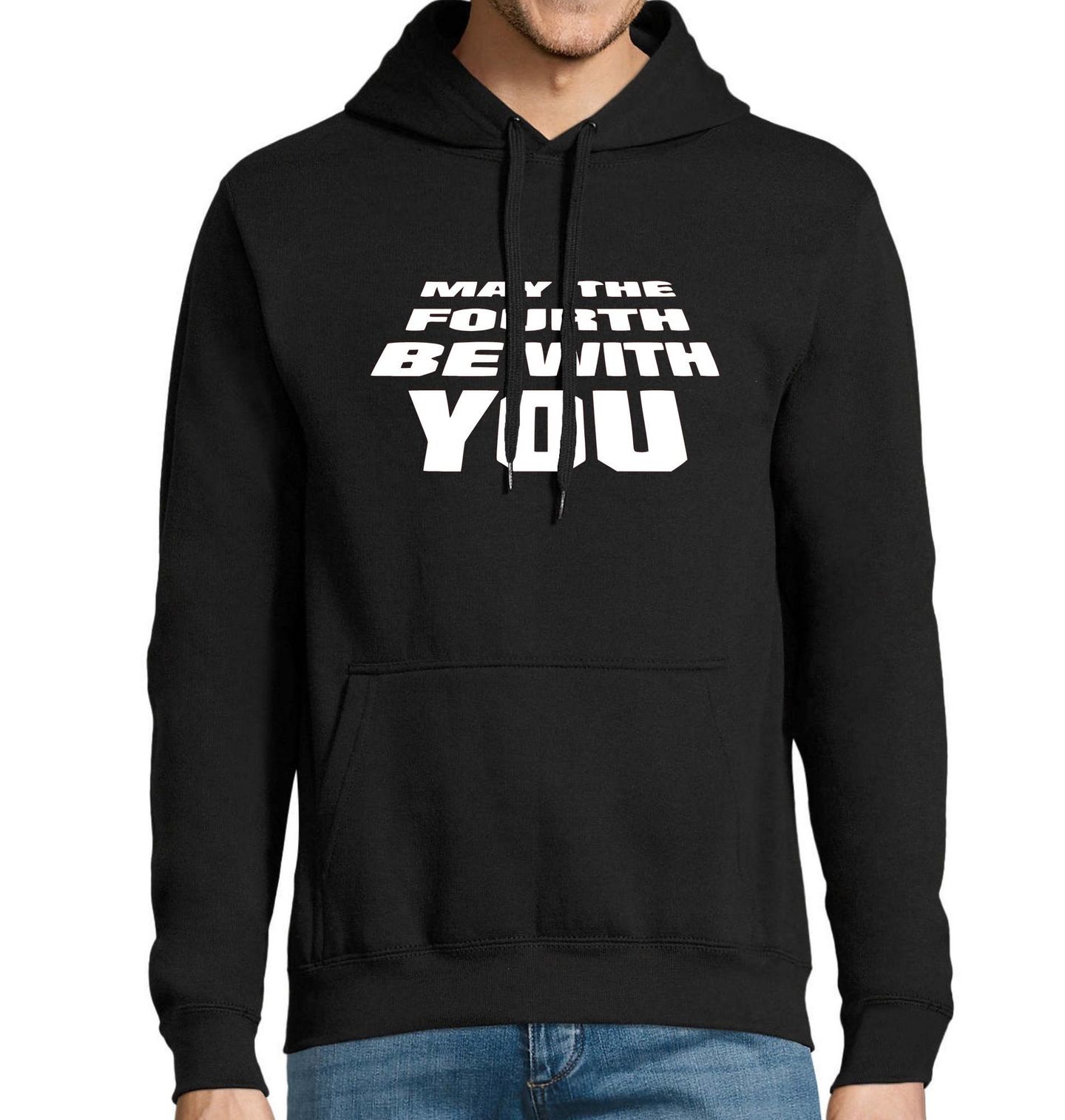 Pánská mikina Čtvrtý květen ať je s tebou Star Wars Day. "May the Fourth Be With You.", hříčka na „May the Force be with you“ – „Síla ať je s tebou“. Tahle ikonická věta slaví svůj den 4. května – a tohle tričko je stylová pocta celé hvězdné sáze. Ideální na Star Wars den nebo pro všechny fanoušky.