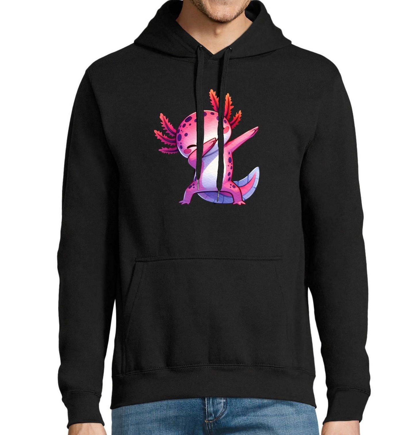 Pánská mikina Dabující Axolotl. Stylový a hravý motiv, na kterém je axolotl v ikonické „dab“ póze, potěší každého, kdo miluje srandu, roztomilost a pozitivní energii. Tento růžový axolotl s veselým výrazem působí, jako by právě oslavil svou herní nebo životní výhru – a rád to dá všem najevo!