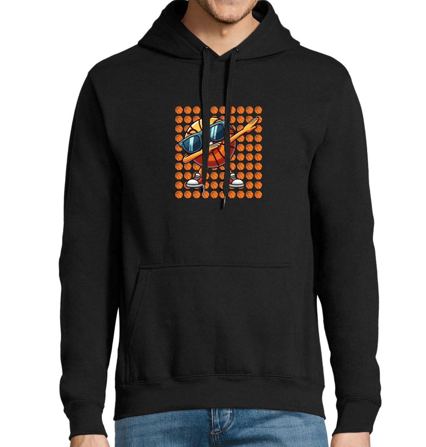 Pánská mikina Dabující Basketbalový Míč. Stylový potisk s roztančeným basketbalovým míčem v brýlích, který „dabuje“ jako pravý mistr hřiště! Perfektní pro každého, kdo miluje sport, basketbal a zábavu. Ideální jako dárek pro malé i velké fanoušky basketu se smyslem pro humor.
