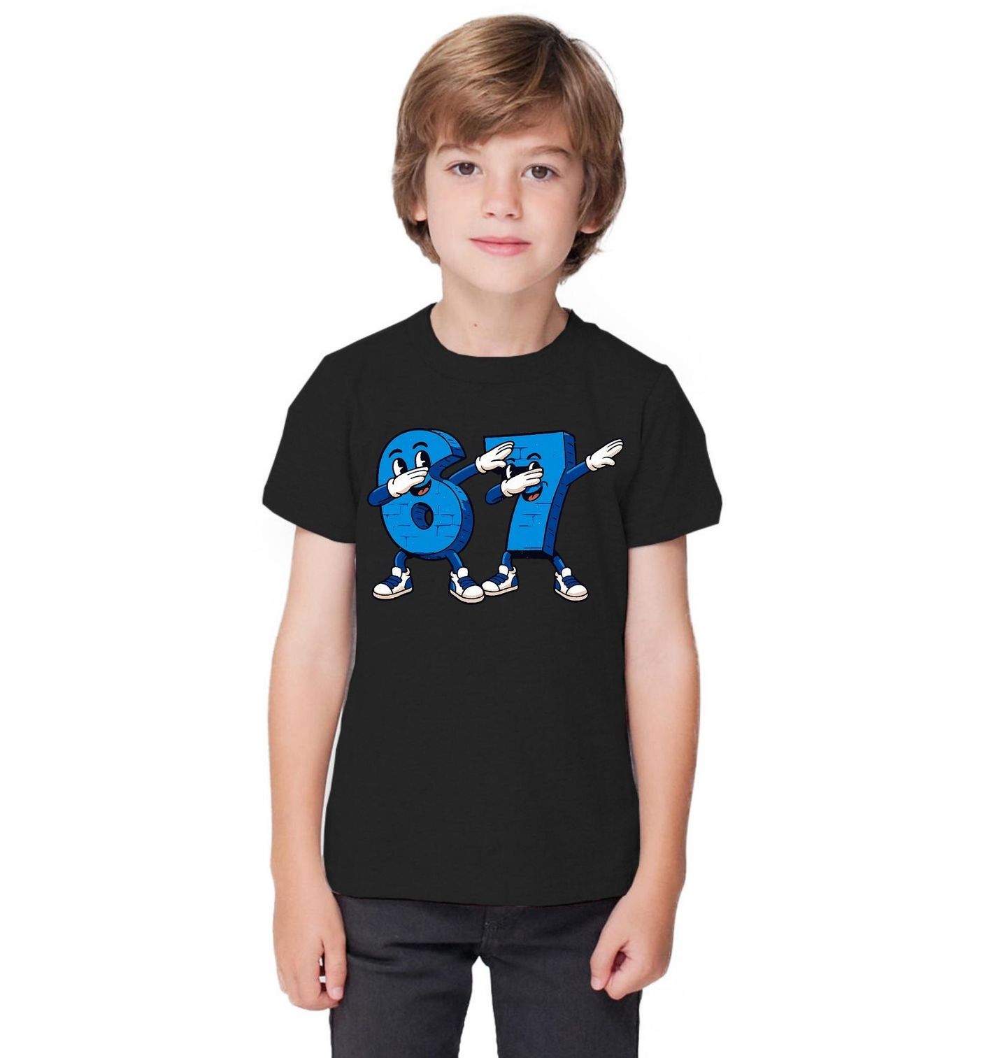 Dětské tričko Dabující Čísla 67 Six Seven. Originální a vtipný motiv 67, kde se číslice six seven proměnily v kreslené postavičky a společně dávají legendární dabující pózu. Tenhle hravý meme design s číslem 67 potěší každého, kdo má smysl pro humor a miluje netradiční motivy.