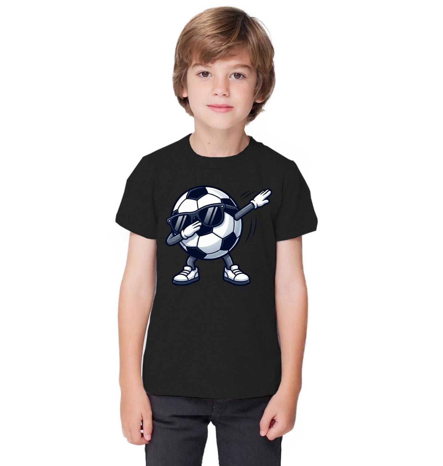 Dětské tričko Dabující Fotbalový Míč. Vtipný a moderní motiv zachycuje ikonický míč ve stylu „dab“ pózy se slunečními brýlemi, který přináší hravý pohled na fotbal i sport. Tento design je ideální pro všechny, kdo milují fotbal a chtějí ukázat svou osobnost s nadhledem a humorem. Perfektní volba pro hráče, fanoušky i každého, kdo má rád sport a chce vyniknout originálním motivem.