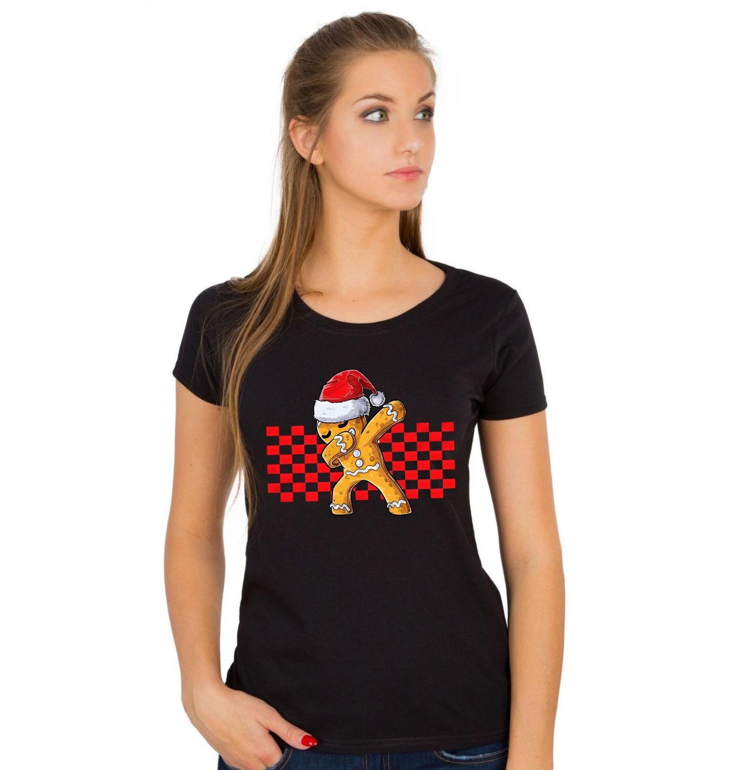 Dětské tričko Dabující Perníček Dabbing Gingerbread Man. Tenhle perníček má styl! Vychutnejte si Vánoce s dávkou originality a humoru díky motivu dabujícího perníčka v cool čepici Santa Clause a s pozadím v kostkovaném designu. Perfektní pro všechny, kdo mají smysl pro zábavu a nebojí se ukázat vánoční swag!