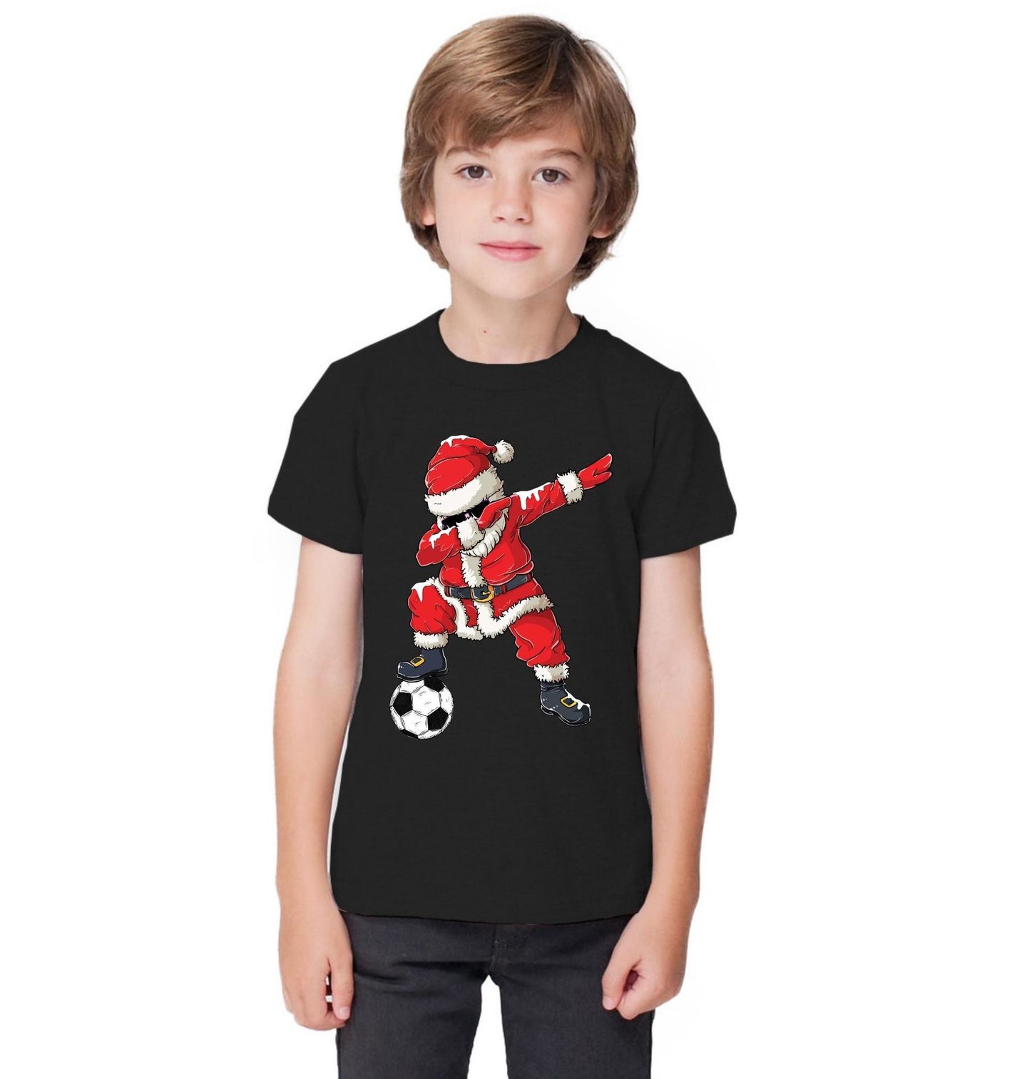 Dětské tričko Dabující Santa Fotbalista. Spojili jsme dvě nejoblíbenější věci – Vánoce a fotbal – do jednoho cool motivu! Tento dabující Santa s fotbalovým míčem je ideální pro všechny fanoušky kopané, kteří chtějí ukázat svou vášeň i během svátků.