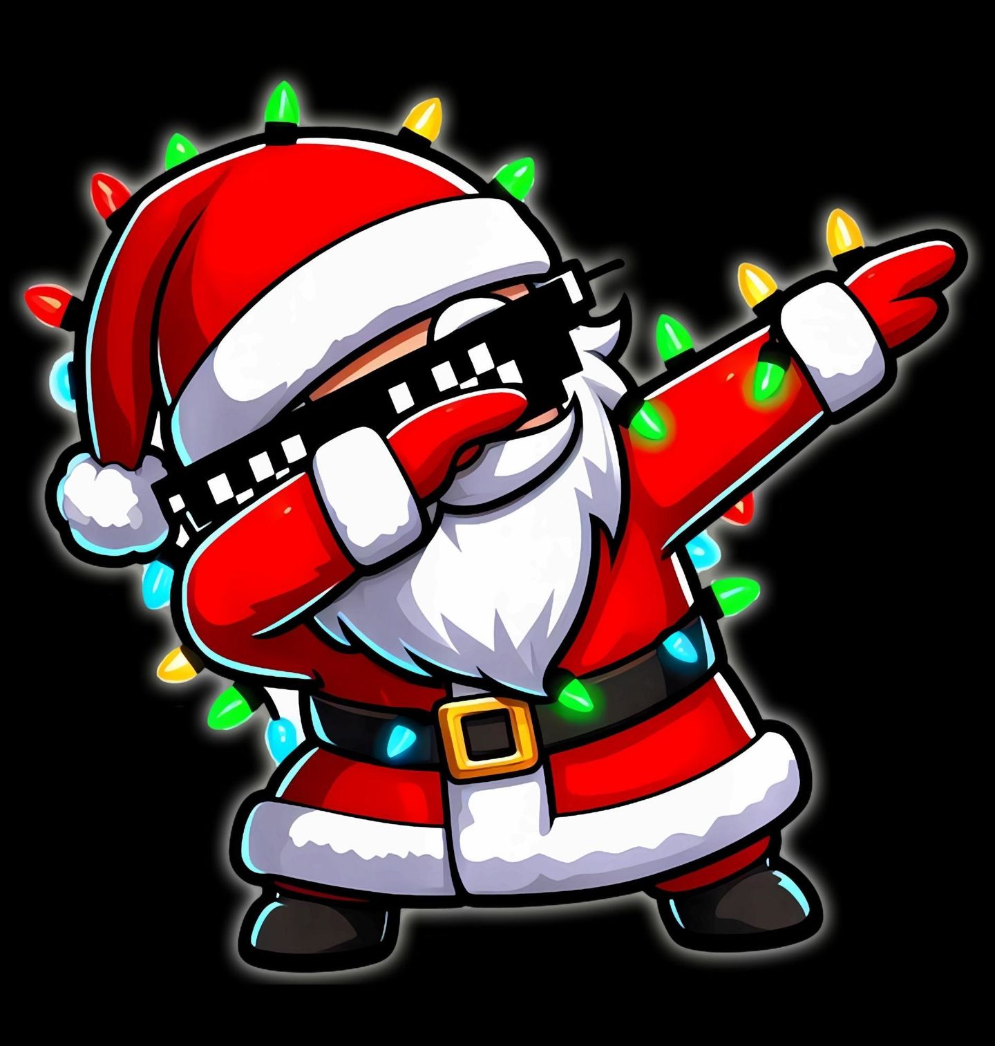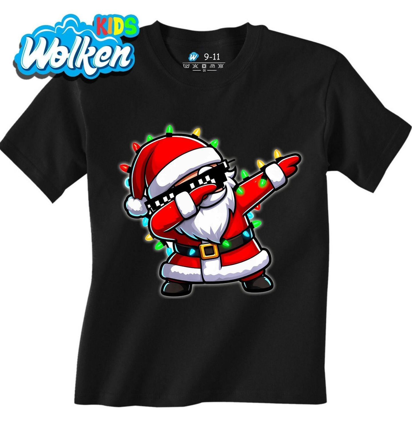 Dětské tričko Dabující Santa v Brýlích. Rozbijte vánoční stereotypy s pořádnou dávkou humoru – motiv Vánoce, dabující Santa ukazuje Santu, jak to umí rozjet v moderním stylu! S tmavými brýlemi, vánočními světýlky a ikonickým dabem je tento design ideální pro všechny, kdo milují Vánoce i trochu „cool“ zábavy.