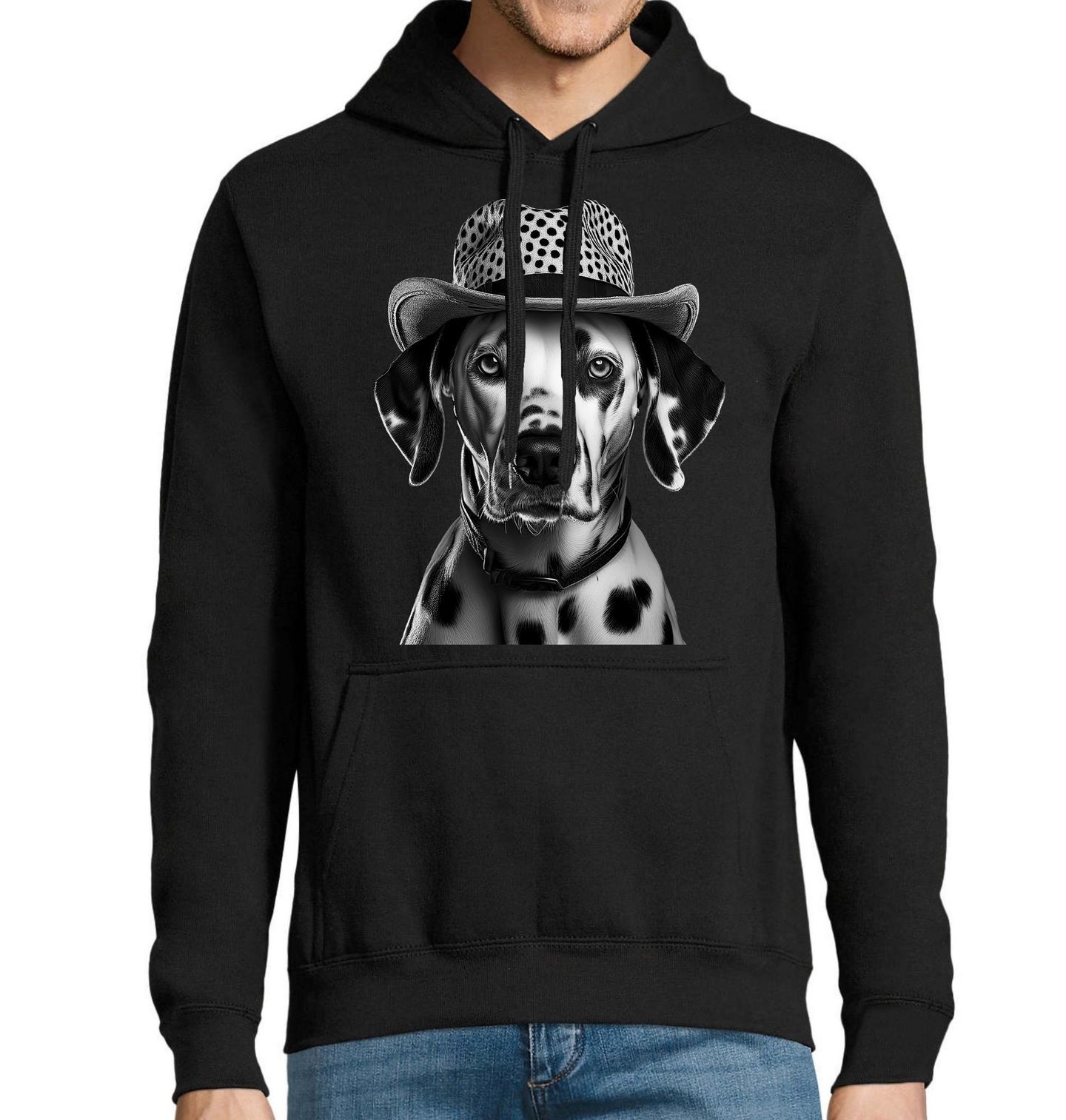 Pánská mikina Dalmatian s Kloboukem. Originální motiv, kde vystupuje Dalmatian v klobouku, přináší kombinaci elegance, humoru a lásky ke psům. Tento design potěší každého, pro koho je pes věrným společníkem a kdo chce ukázat svůj styl jako pravý pejskař. Dalmatian je ikonické plemeno známé svými typickými skvrnami a energickou povahou, což motivu dodává jedinečný charakter.