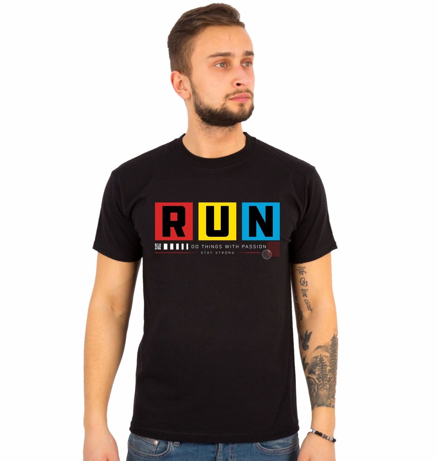 Pánské tričko Dělej věci s vášní RUN Do Things with Passion. Stay strong → Zůstaň silný. Moderní grafický motiv s barevnými bloky a výrazným nápisem RUN je určen pro všechny, kteří berou běh a sport jako vášeň, životní styl a cestu k vnitřní síle. Kontrastní barvy a technické detaily vytvářejí dynamický design, který symbolizuje energii, odhodlání a neustálý pohyb vpřed.