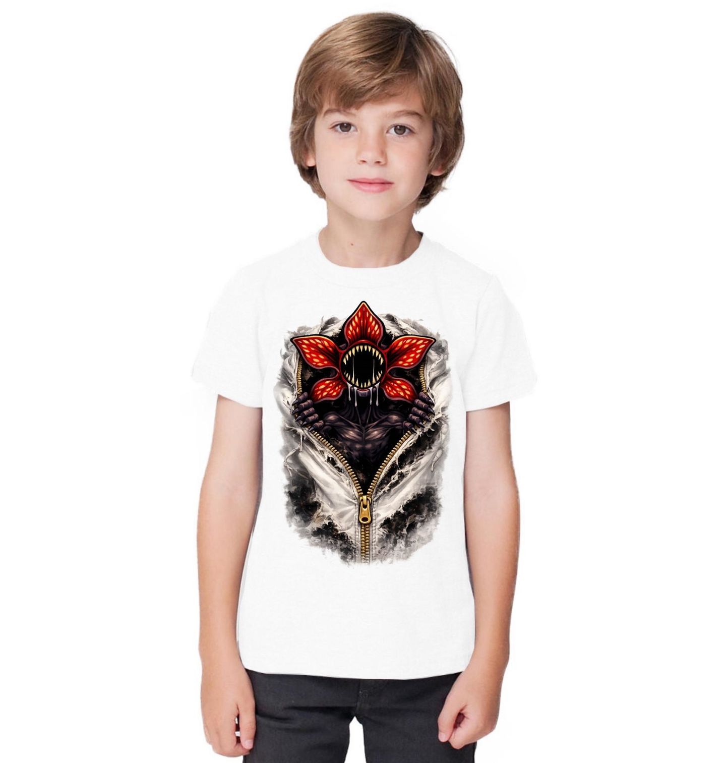 Dětské tričko Demogorgon Stranger Things. Demogorgon je primárně známý jako hlavní monstrum z první řady seriálu Stranger Things od Netflixu. Jedná se o vysokého, štíhlého humanoida z dimenze „vzhůru nohama“ (Upside Down), který postrádá obličej, ale otevírá hlavu do podoby květiny plné ostrých zubů. Bytost je dravá, má velkou sílu a regenerační schopnosti. Pro milovníky filmů a hororů.
