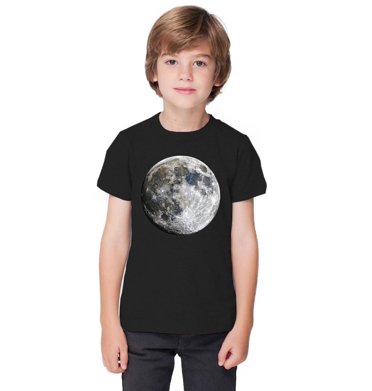 Dětské tričko Detailní Měsíc s Krátery. Jedinečný motiv zobrazující detailní a realistickou podobu měsíce, jak září v nekonečném vesmíru. Každý kráter, světlejší i tmavší oblast je precizně vykreslená, takže motiv působí téměř jako skutečná fotografie z oběžné dráhy. Pokud tě fascinuje vesmír, astronomie, noční obloha a tajemství hvězd, tenhle design je pro tebe jako stvořený.