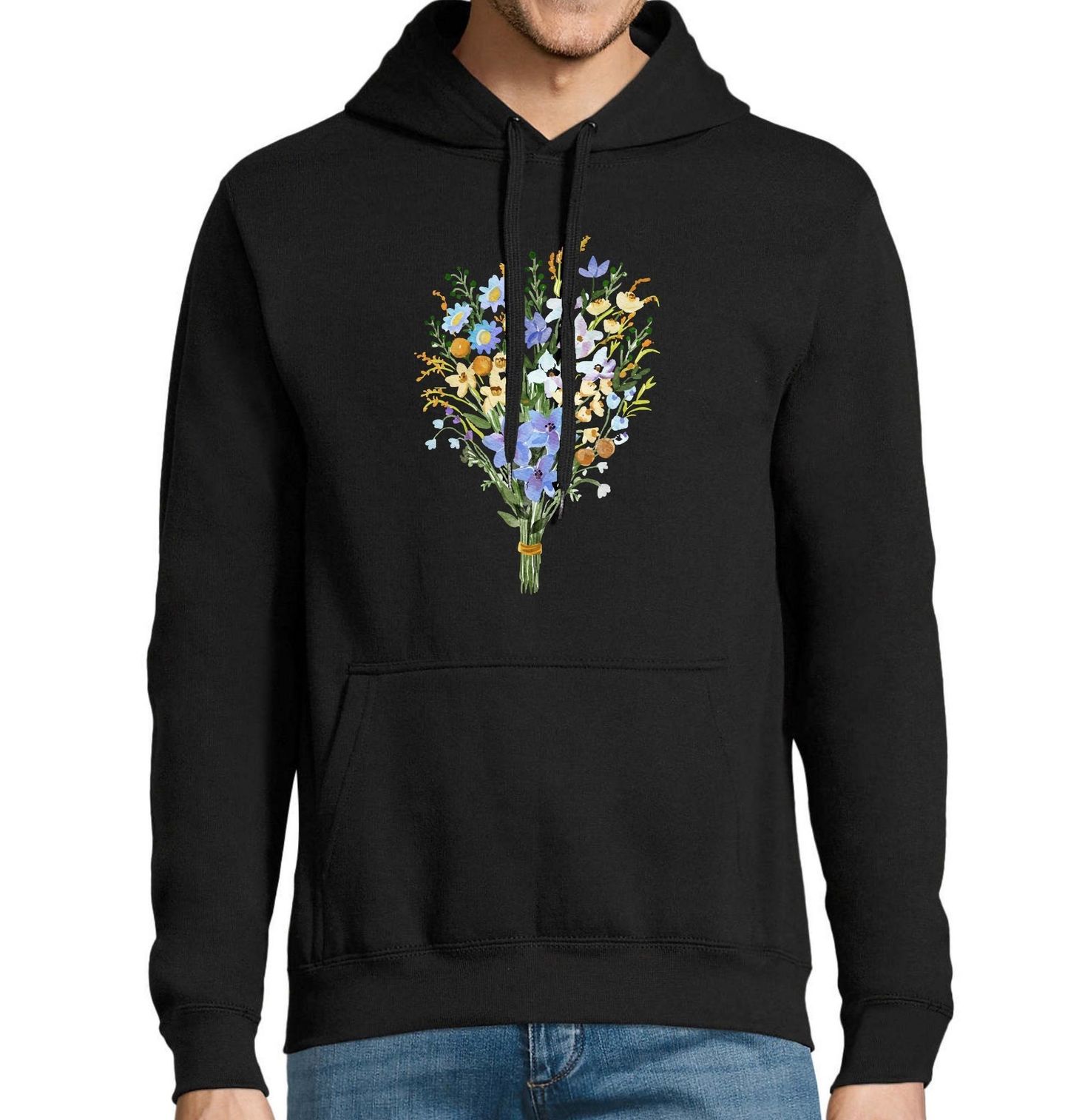 Pánská mikina Divoká Luční Kytice. Romantické tričko s akvarelovým motivem květiny, který připomíná čerstvě natrhanou luční kytici. Na ilustraci najdete jemné květy jako chrpy, zvonky, sedmikrásky, kosmatce, rozrazil i žluté pryskyřníky, které dohromady tvoří harmonický svazek plný barev a letní atmosféry.