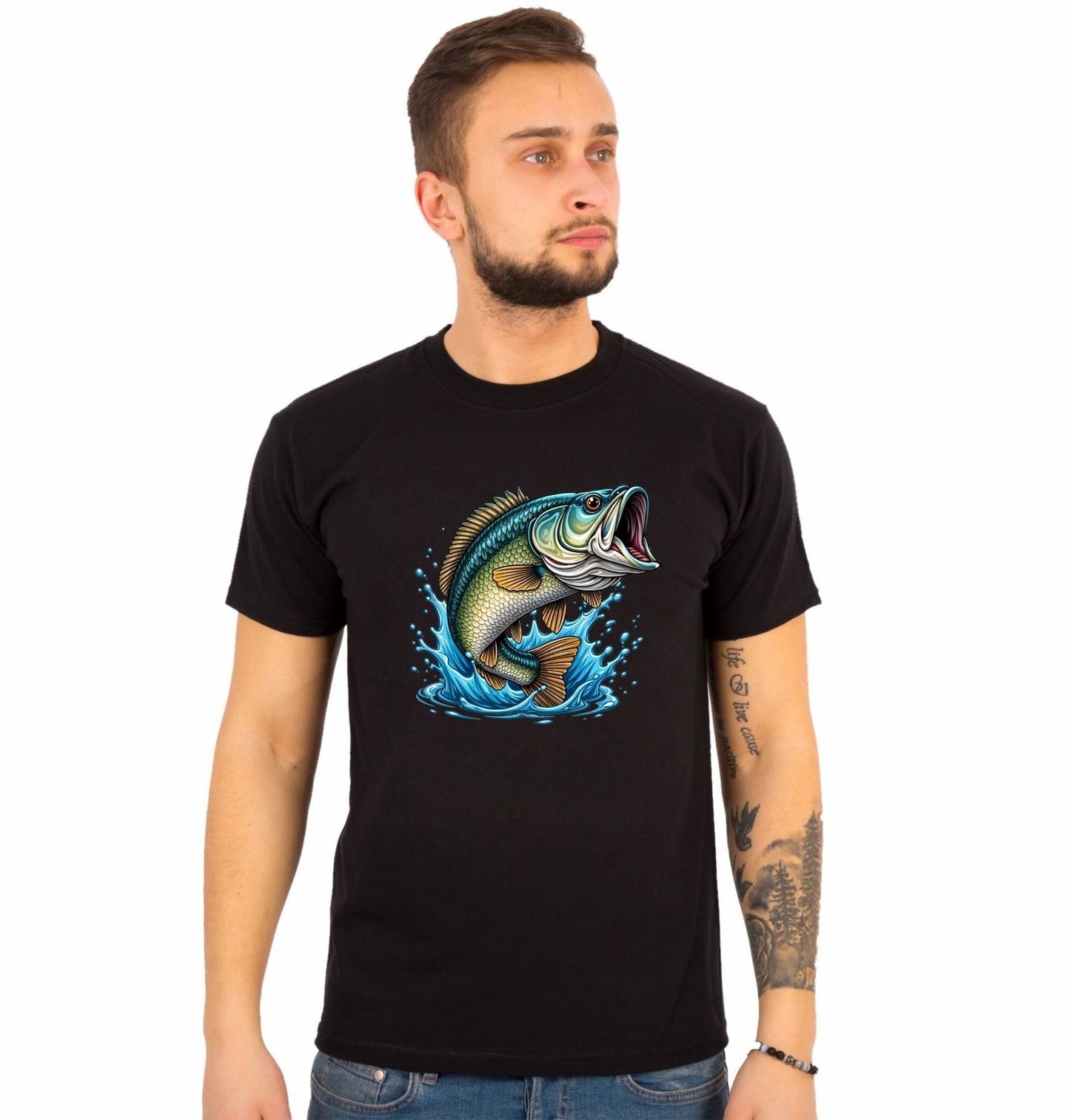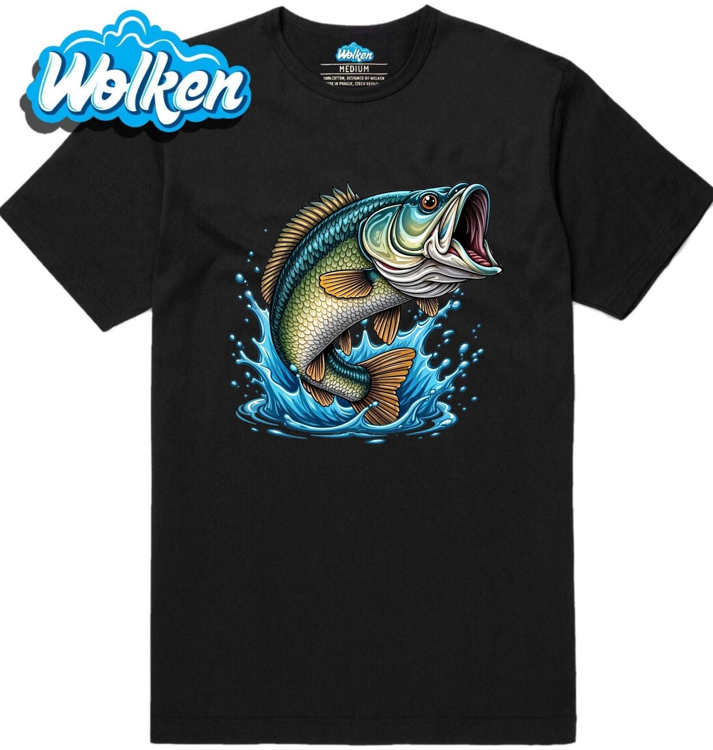 Pánské tričko Divoký Okoun. Tato výrazná ilustrace okouna přináší stylový a energický motiv pro každého rybáře, který miluje dobrodružství u vody. Dynamický výskok dravé ryby z vody zachycuje vzrušení, které přináší sportovní rybaření. Ideální dárek pro každého, koho baví lov velkých ryb a kdo chce svůj koníček nosit hrdě i mimo vodu.