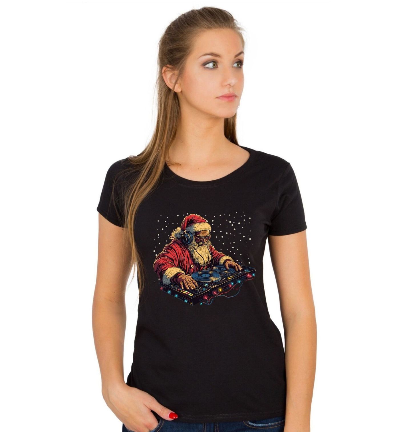 Dámské tričko DJ Santa na Vánoční párty. Santa Claus usedl za mixážní pult, nasadil sluchátka a ukazuje, že letos budou Vánoce nejen veselé, ale i pořádně taneční. Tento design je ideální pro všechny, kdo milují hudbu, klubovou atmosféru a chtějí propojit kouzlo Vánoc s rytmy, které rozproudí každou party.
