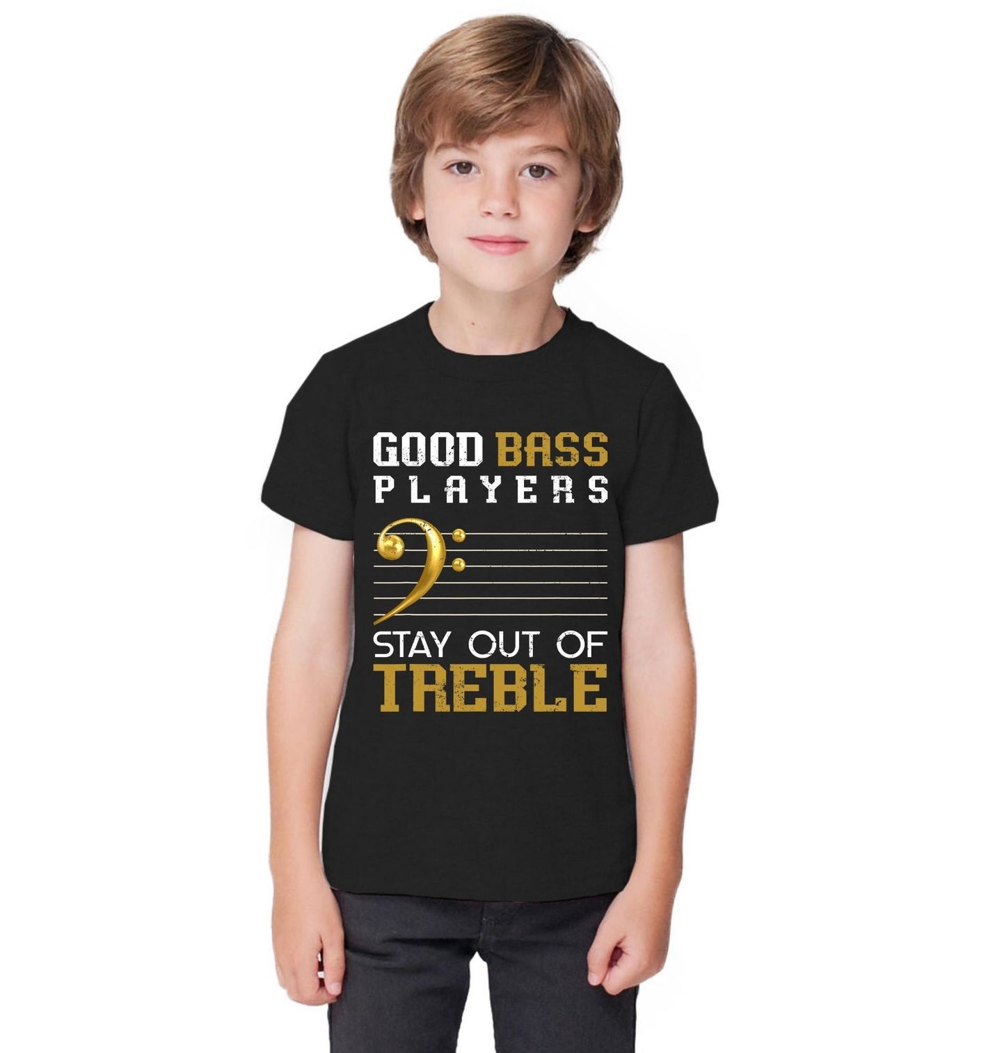 Dětské tričko Dobří basáci se drží dál od výšek. Vtipný a stylový motiv pro každého, kdo ví, že baskytara patří do hloubek a ne do výšek. Design „Good Bass Players Stay Out of Treble“ spojuje zlatý basový klíč s hudební osnovou a výraznou typografií, která jasně říká, kdo drží rytmus kapely pohromadě. (Humorná slovní hříčka – treble znamená hudebně „výšky“, ale také „problémy“.)