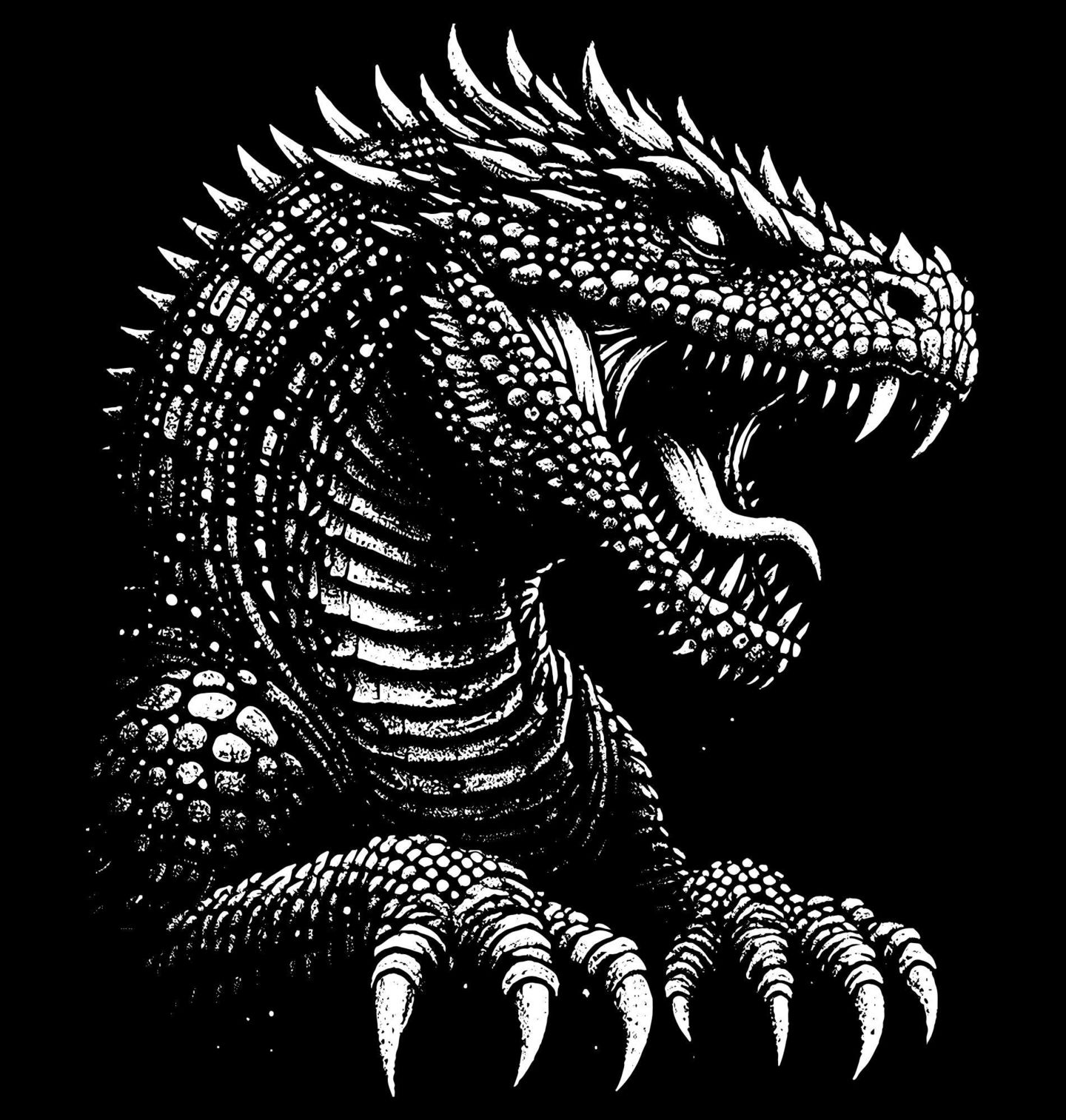 Dámské tričko Drak z Hlubin Temnoty. Tento působivý motiv zobrazuje majestátní stvoření - drak v detailním černo-bílém provedení. Drsná textura šupin, ostré zuby a výraz plný síly dávají jasně najevo, že jde o ikonický symbol světa fantasy. Ideální pro všechny, kdo milují temnou mytologii, epické příběhy a mytická stvoření.