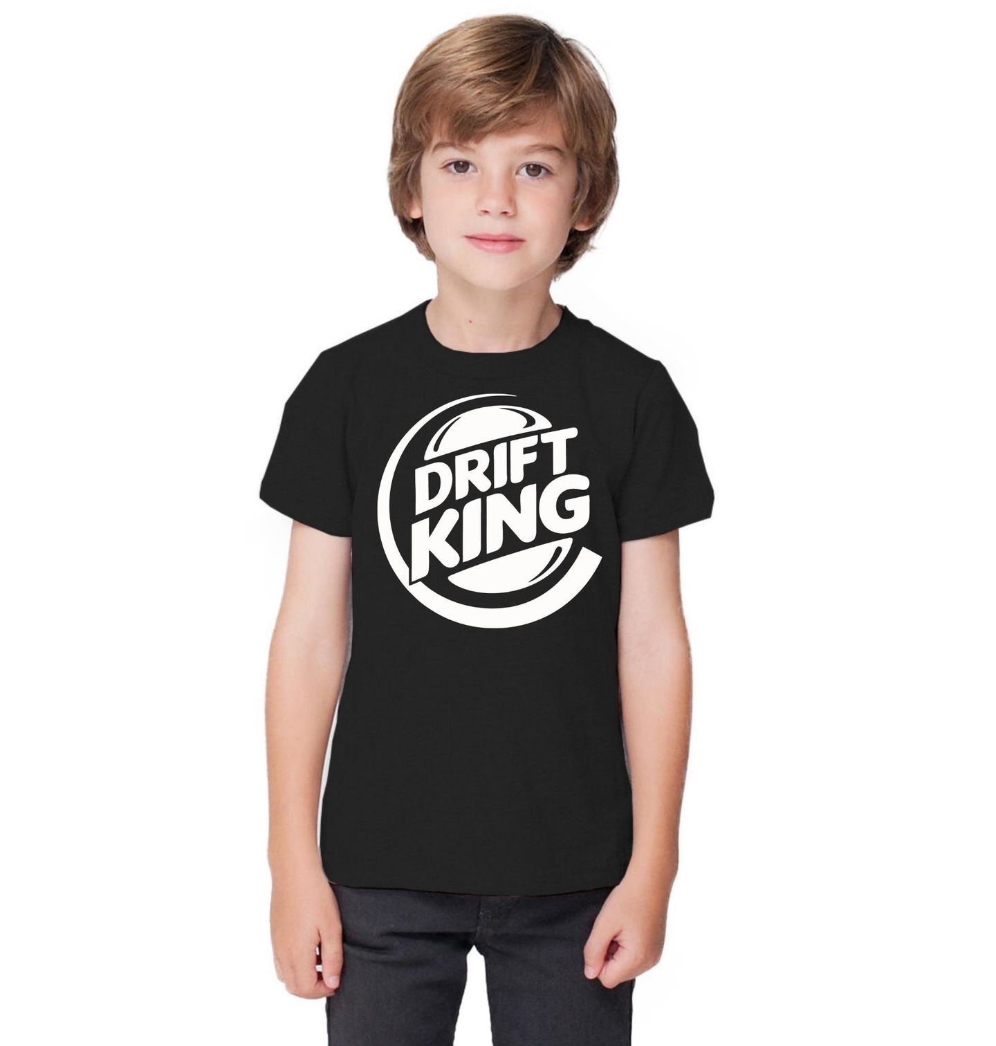 Dětské tričko Drift King Burger King. Stylový motiv Drift King je hravá parodie inspirovaná známým fastfoodovým logem Burger Kingu, převedená do světa aut, tuningu a drift kultury. Výrazná grafika připomíná ikonický styl, ale přidává vlastní motorsport charakter, díky kterému motiv působí originálně a odvážně. „Drift King“ znamená „Král driftu“ a symbolizuje vášeň pro smyky, výkon a jízdu bokem.