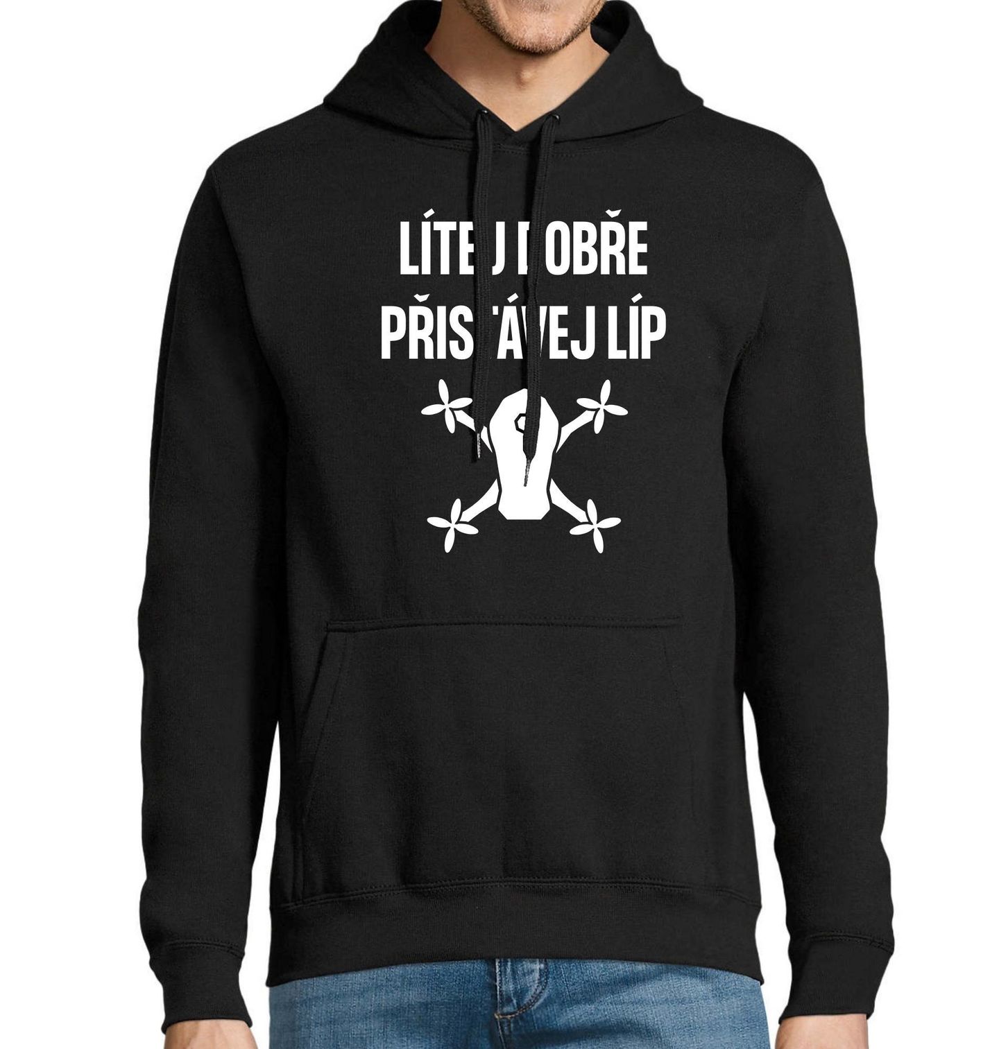 Pánská mikina Dron Lítej dobře, přistávej líp. Originální a vtipně laděný motiv pro všechny, které baví drony, létání a moderní technologie. Minimalistický design s jasným nápisem potěší každého pilota, který ví, že správné přistání je stejně důležité jako samotný let.Stylový vzhled ocení začátečník i zkušený nadšenec, pro kterého jsou drony koníček i životní styl.
