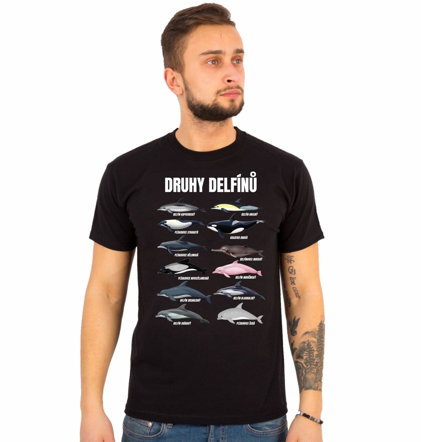 Pánské tričko Druhy Delfínů. Na motivu najdeš různé druhy jako delfín kapverdský, delfín obecný, plískavice strakatá, kosatka dravá, plískavice bělonosá, delfínovec induský, plískavice novozélandská, delfín indočínský, delfín drsnozubý, delfín dlouholebý, delfín skákavý a plískavice šedá. Díky tomu si snadno osvojíš rozmanitost, jakou delfín v oceánech představuje.