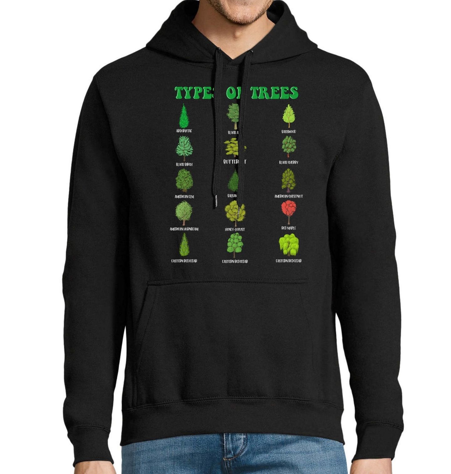 Pánská mikina Druhy Stromů Types of Trees. Tento ilustrovaný motiv představuje strom v mnoha podobách a nabízí přehled různých druhů, které se běžně vyskytují v přírodě. Každý strom je zobrazen stylizovanou ilustrací a doplněn názvem, díky čemuž je motiv nejen dekorativní, ale i edukativní. Motiv je ideální pro milovníky přírody, botaniky a vzdělávání.