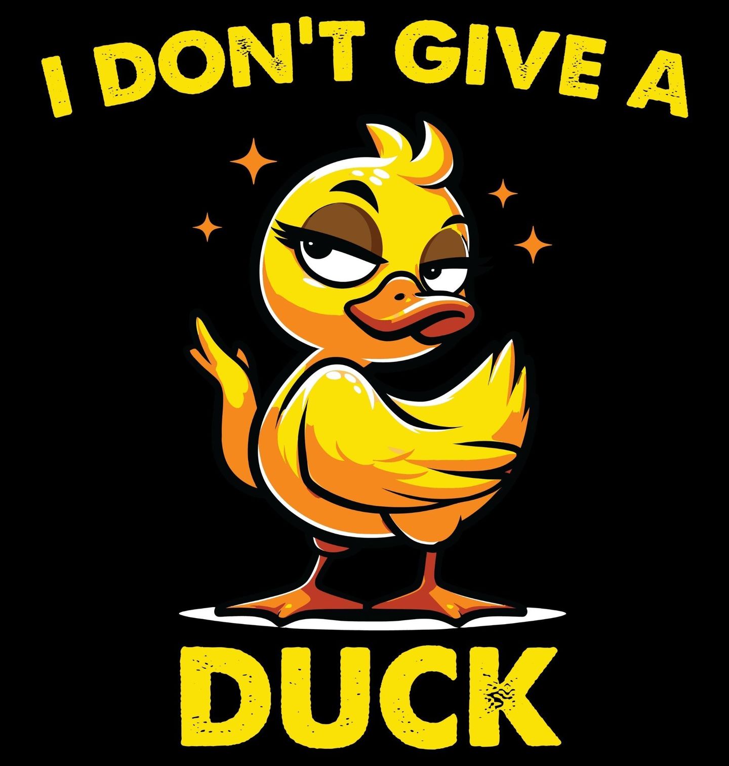 Pánské tričko Drzá Kachna I Don’t Give a Duck. Stylový a vtipný motiv s nápisem „I DON’T GIVE A DUCK“ a sebevědomou ilustrací, kterou reprezentuje výrazná kachna s pořádným postojem. Překlad textu znamená: „Je mi to jedno“ (parodie na „I don’t give a fuck“), což z motivu dělá ideální volbu pro každého, kdo si jde svou cestou a neřeší názory ostatních.