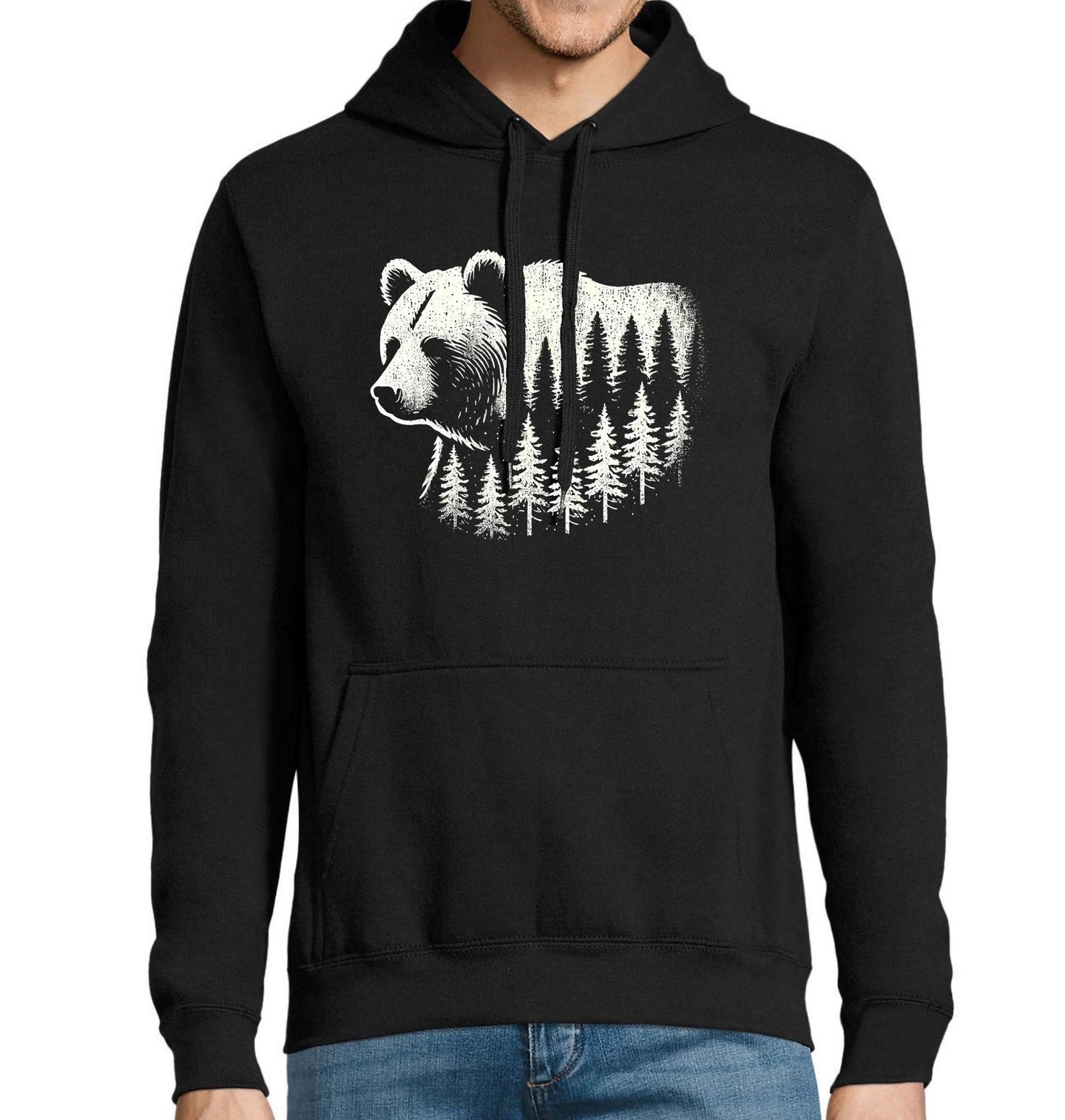Pánská mikina Duch Medvěda v Lese. Síla divočiny, klid lesa a majestát medvěda – vše v jednom silném vizuálu. Tento design spojuje siluetu medvěda s hustým jehličnatým lesem, který jako by vyrůstal přímo z jeho duše. Tričko ideální pro všechny milovníky přírody, lesních toulků a zemitých tónů. Noste s hrdostí ducha lesa na hrudi!