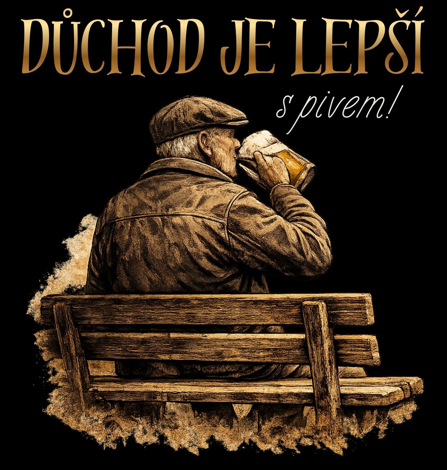 Pánské tričko Důchod je Lepší s Pivem. Důchod není konec, ale začátek klidu, pohody a zaslouženého odpočinku – ideálně na lavičce s půllitrem v ruce. Stylová ilustrace zachycuje typického českého hrdinu, kterým je děda, co si bez spěchu vychutnává pivo a má konečně čas jen pro sebe.