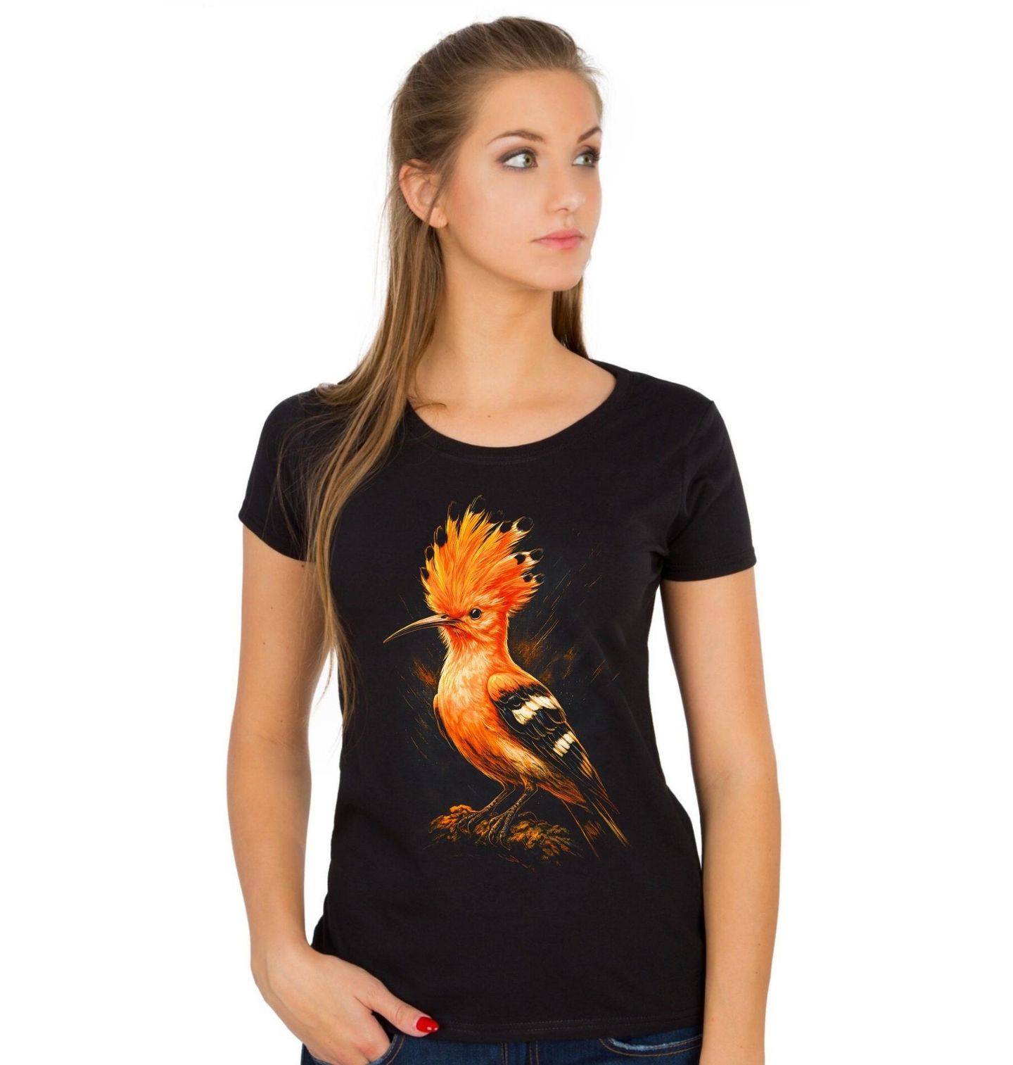 Dámské tričko Dudek chocholatý Hoopoes. Tento originální motiv zachycuje výrazný pták jménem dudek chocholatý (Upupa epops), který je známý svou nápadnou oranžovou chocholkou a kontrastní kresbou křídel. Dudek chocholatý je jeden z nejzajímavějších druhů, které lze v přírodě spatřit, a právě tento pták dodává ilustraci exotický a zároveň přírodní charakter.