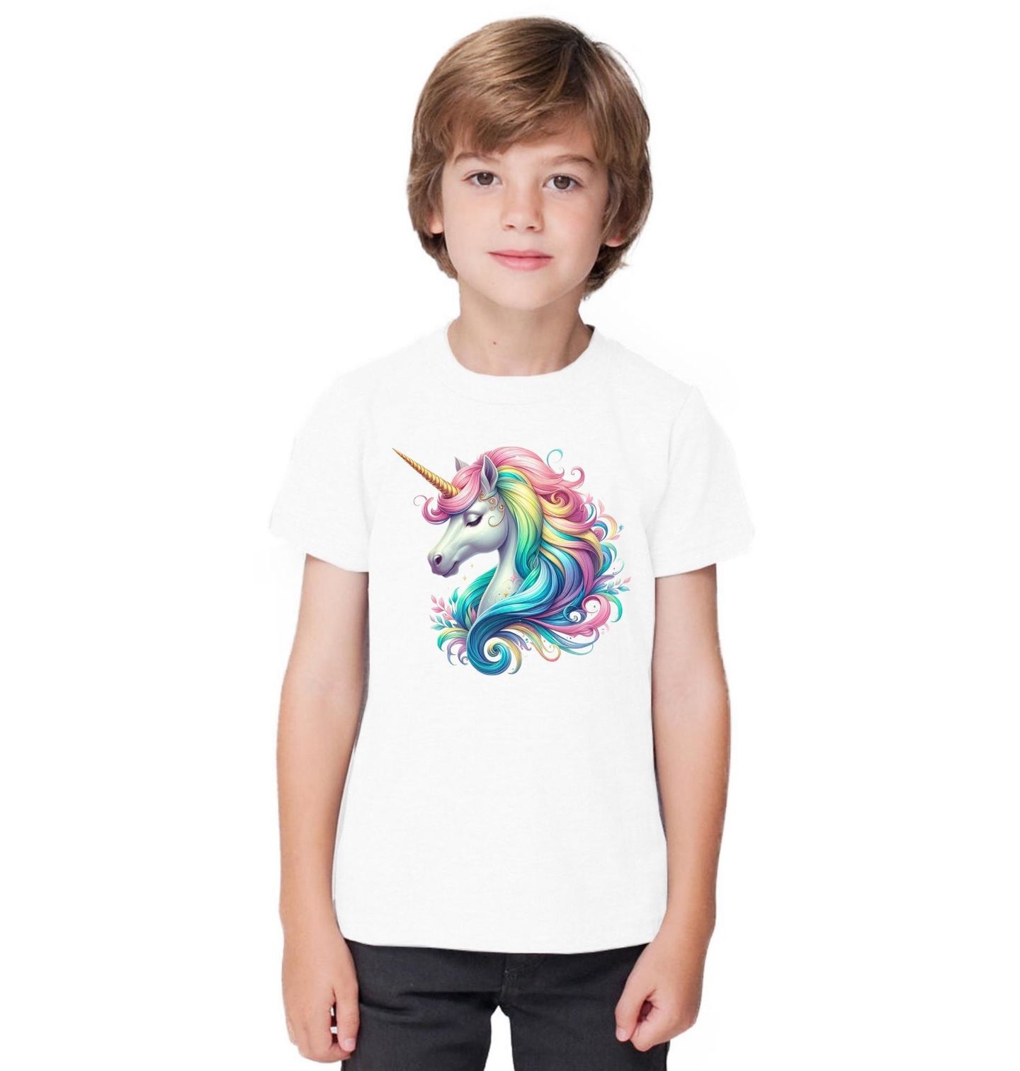 Dětské tričko Duhová Hříva Jednorožce. Objevte kouzelný motiv, který si zamilují děti i dospělí snílci! Tento elegantní jednorožec s nádhernou duhovou hřívou symbolizuje krásu, klid a kouzlo fantazie. Jednorožec v tomto provedení je nejen nádherným výtvarným prvkem, ale také ztělesněním jemnosti, harmonie a kouzelného světa.