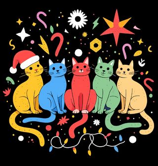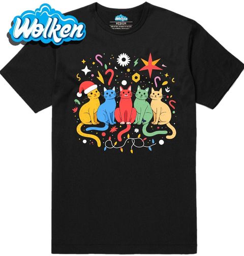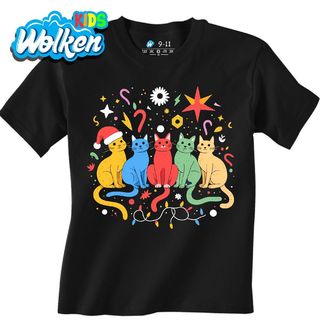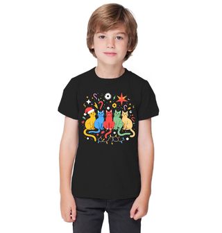 Dětské tričko Duhové Vánoční Kočky. Rozzařte sváteční dny barvami! Tento veselý motiv plný hravých barevných koček a vánoční výzdoby zaručeně vykouzlí úsměv každému milovníkovi chlupatých mazlíčků. Když je kočka v hlavní roli a Vánoce jsou za rohem, vznikne kombinace, kterou si zamilujete!