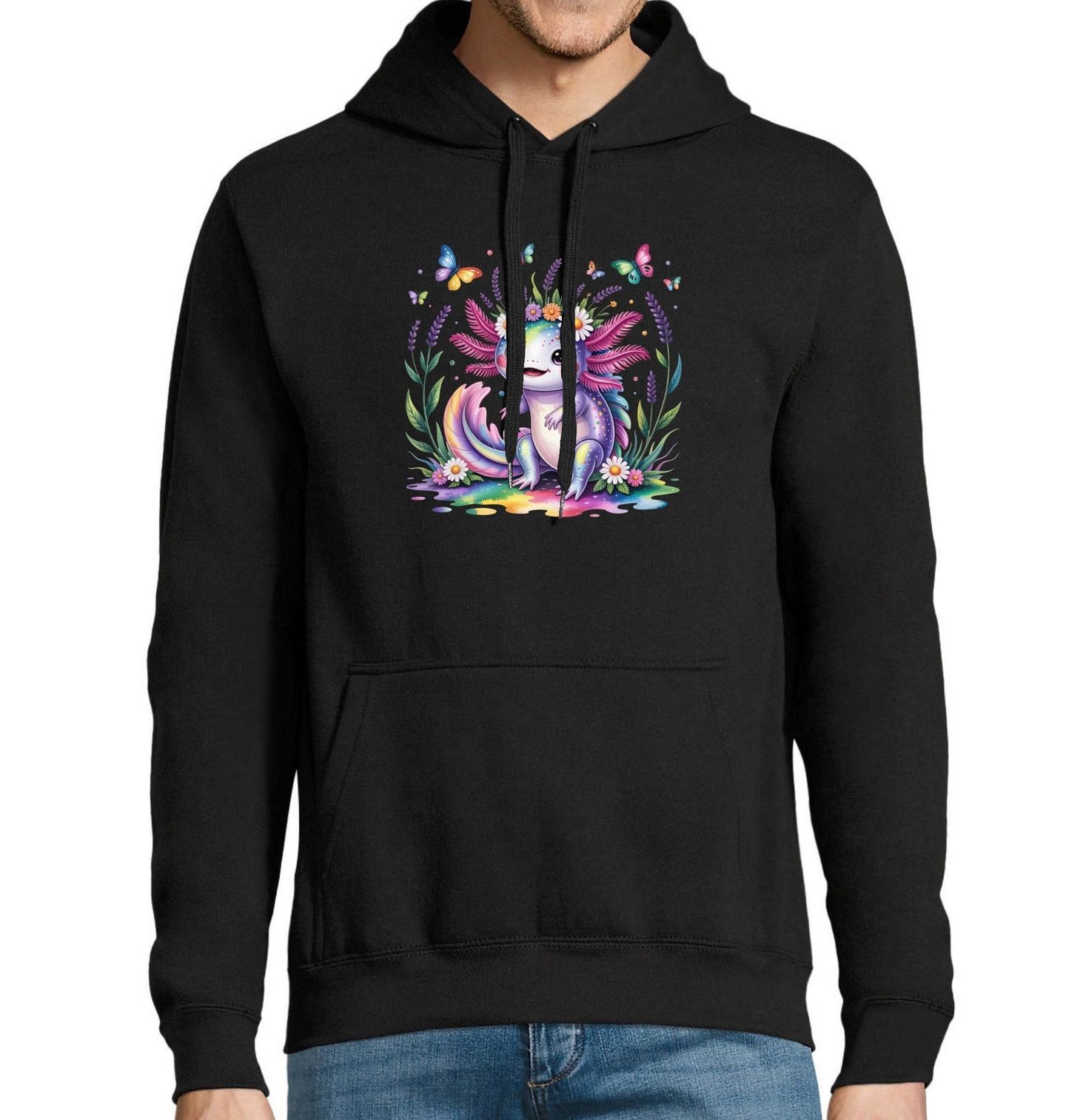 Pánská mikina Duhový Axolotl v Říši Motýlů a Květin
