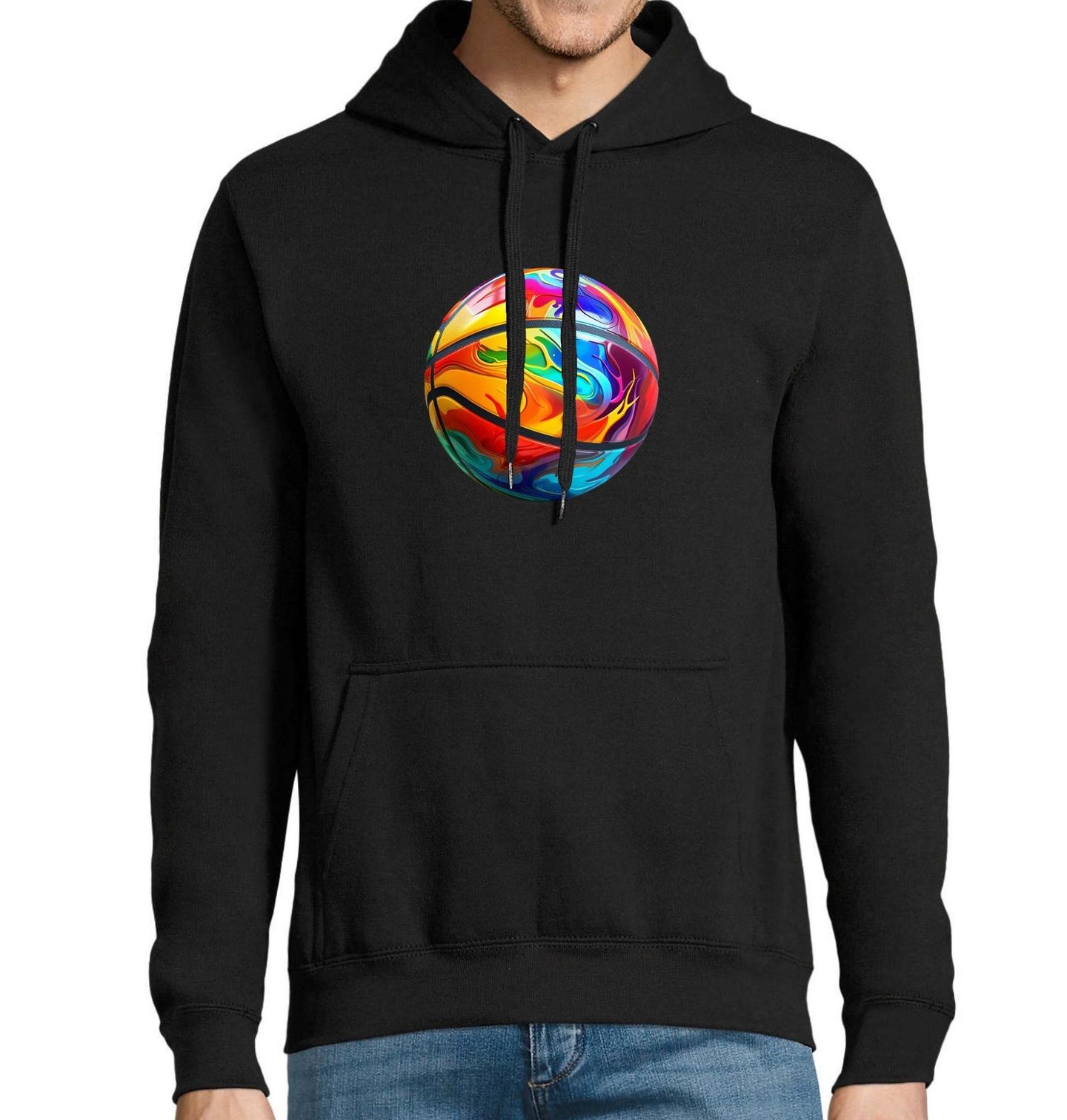 Pánská mikina Duhový Basketbalový Míč. Tento originální motiv zachycuje barevný míč ve stylu tekoucí duhy, který promění každý outfit ve výrazný kousek. Pokud je pro tebe basketbal víc než jen sport, ale i radost, energie a životní styl, tenhle design tě vystihne na 100 %. Barevný míč symbolizuje kreativitu, svobodu a vášeň pro basketbal, ať už fandíš, hraješ, nebo jen miluješ originální sportovní motivy.