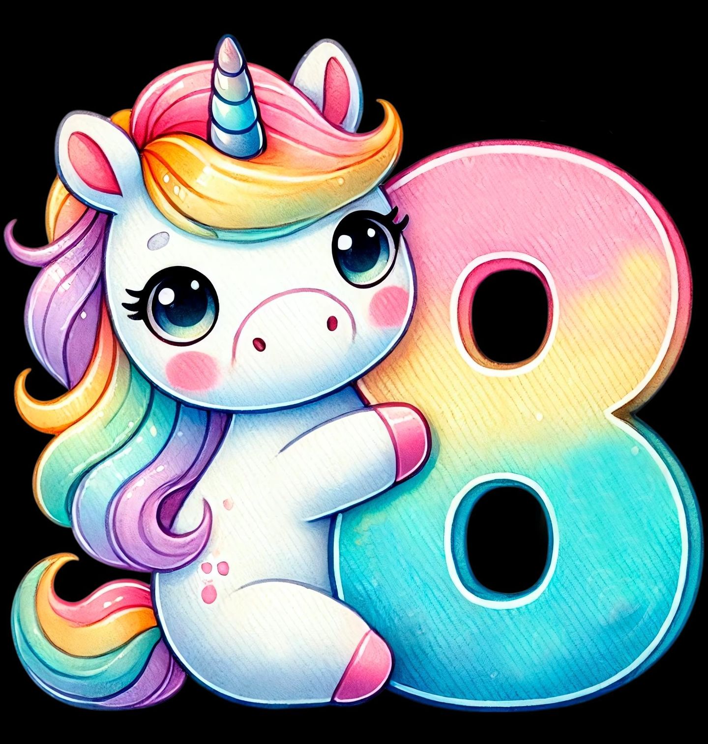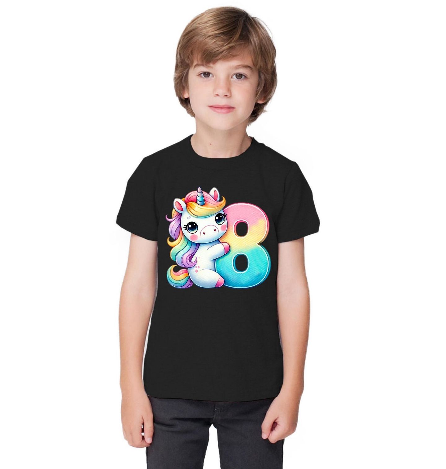 Dětské tričko Duhový Jednorožec 8. Narozeniny. Oslavte narozeniny stylově s tímto roztomilým potiskem! Jednorožec v duhových barvách a velkou osmičkou potěší každé dítě, které slaví 8. narozeniny. Ideální dárek pro děti, které milují barvy, pohádky a magická stvoření.