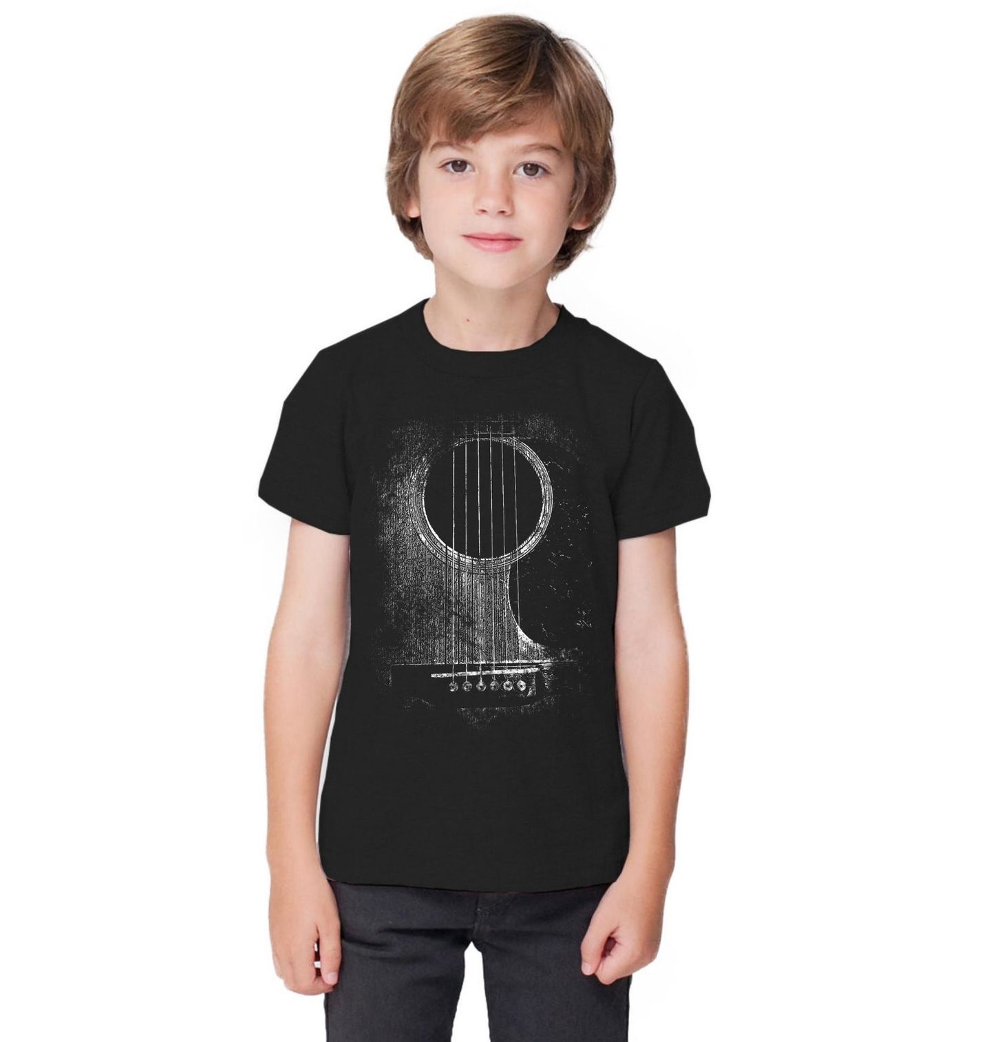 Dětské tričko Duše Akustické Kytary. Silný a emotivní motiv, který zachycuje detail, jenž definuje každý tón – rezonanční otvor a struny, které dává kytara do pohybu. Černobílé, kontrastní provedení podtrhuje atmosféru hloubky, klidu i syrové hudební energie. Minimalistický design zvýrazňuje texturu dřeva, napětí strun a charakter nástroje.