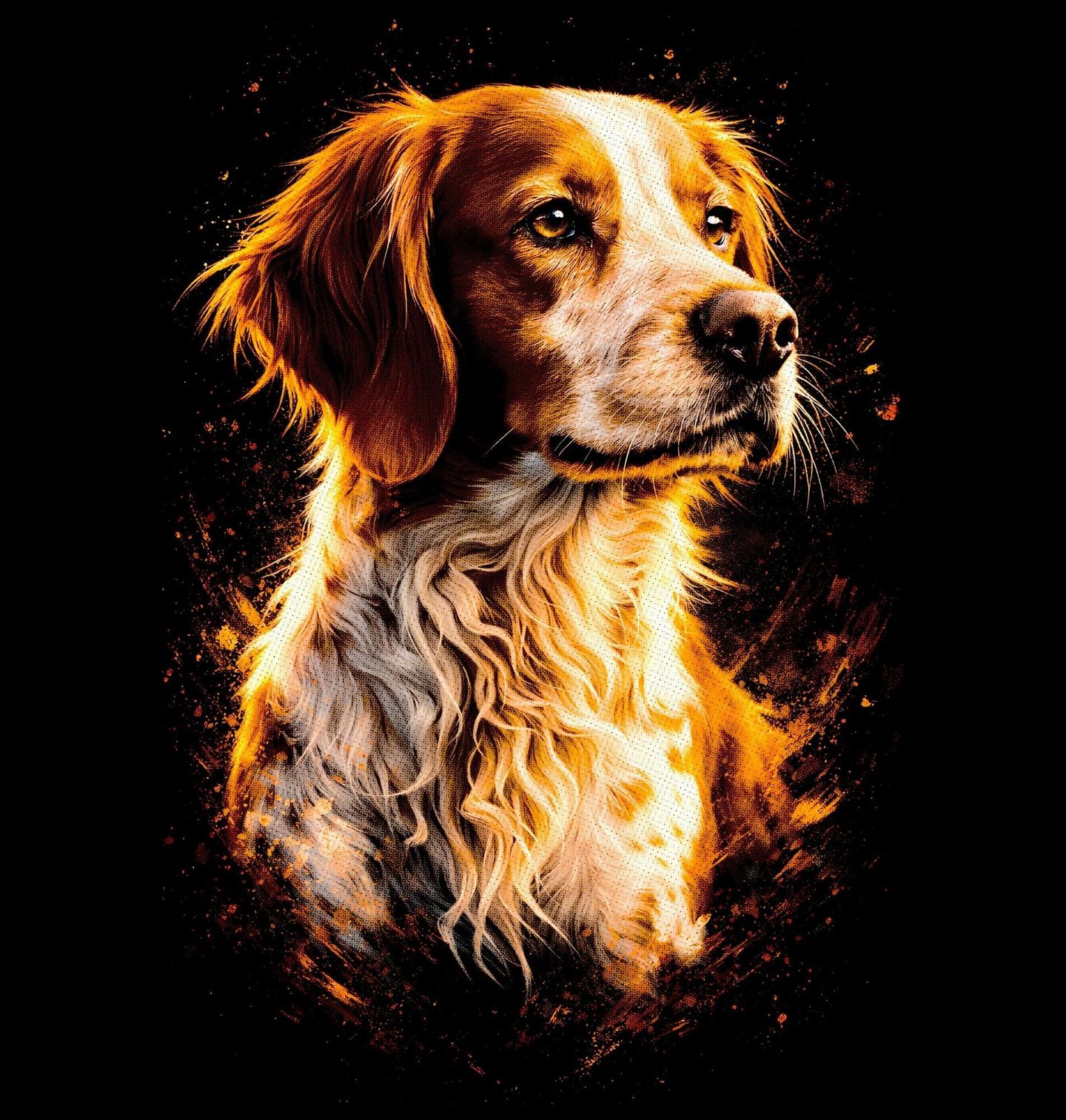 Dámské tričko Elegantní Bretaňský ohař. Tento všestranný pes je oblíbený nejen mezi myslivci, ale i jako skvělý rodinný společník.Každý pejskař ocení jeho přátelskou povahu, inteligenci a ochotu spolupracovat. Bretaňský ohař je pes, který miluje pohyb, práci v terénu a blízkost svého člověka. Jeho typický vzhled s jemnou srstí a výraznýma očima působí zároveň něžně i sebevědomě.