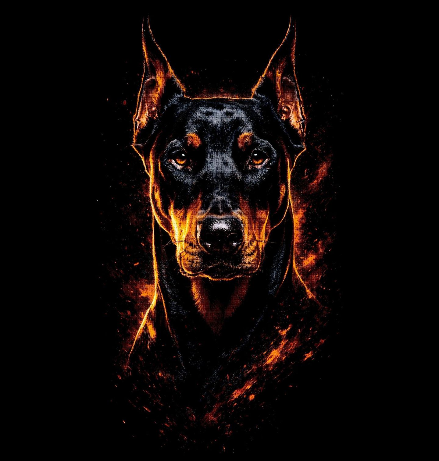 Pánské tričko Elegantní Dobrman. Tento působivý motiv zachycuje plemeno Dobrman, které je symbolem elegance, síly a inteligence. Ostré rysy, vzpřímené uši a soustředěný pohled dokonale vystihují charakter tohoto výjimečného plemene. Každý pejskař, který obdivuje silné a oddané psy, si tento design zamiluje. Dobrman je velmi inteligentní a loajální pes, který vyniká nejen svou ochranitelskou povahou, ale i elegancí a rychlostí.