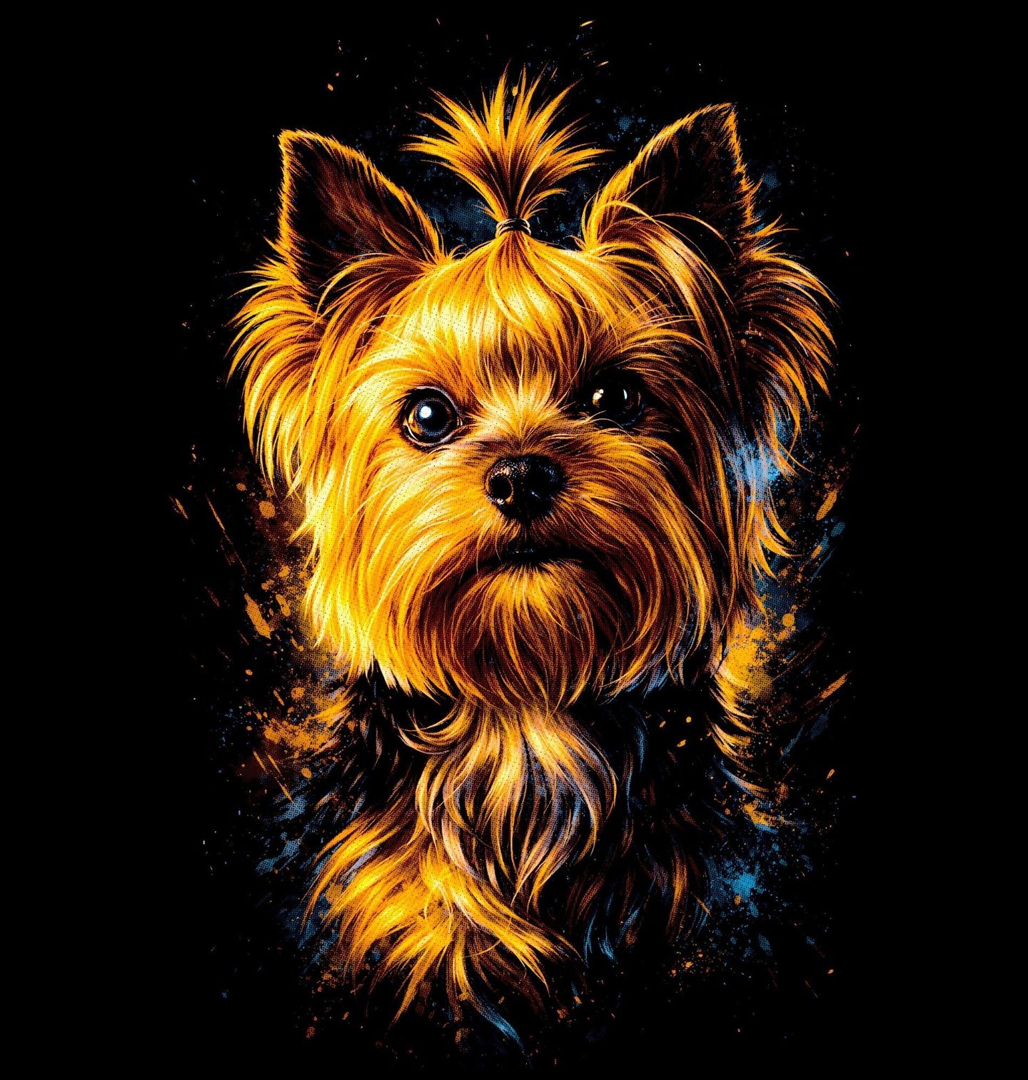 Dámské tričko Elegantní Jorskšírský Teriér. Stylový a roztomilý motiv, který dokonale vystihuje kouzlo plemene jorkšírský teriér. Tento elegantní pes je známý svou jemnou srstí, sebevědomým vystupováním a velkou osobností navzdory malé velikosti. Každý pejskař ocení design, který zachycuje jeho typický vzhled i šarm.
