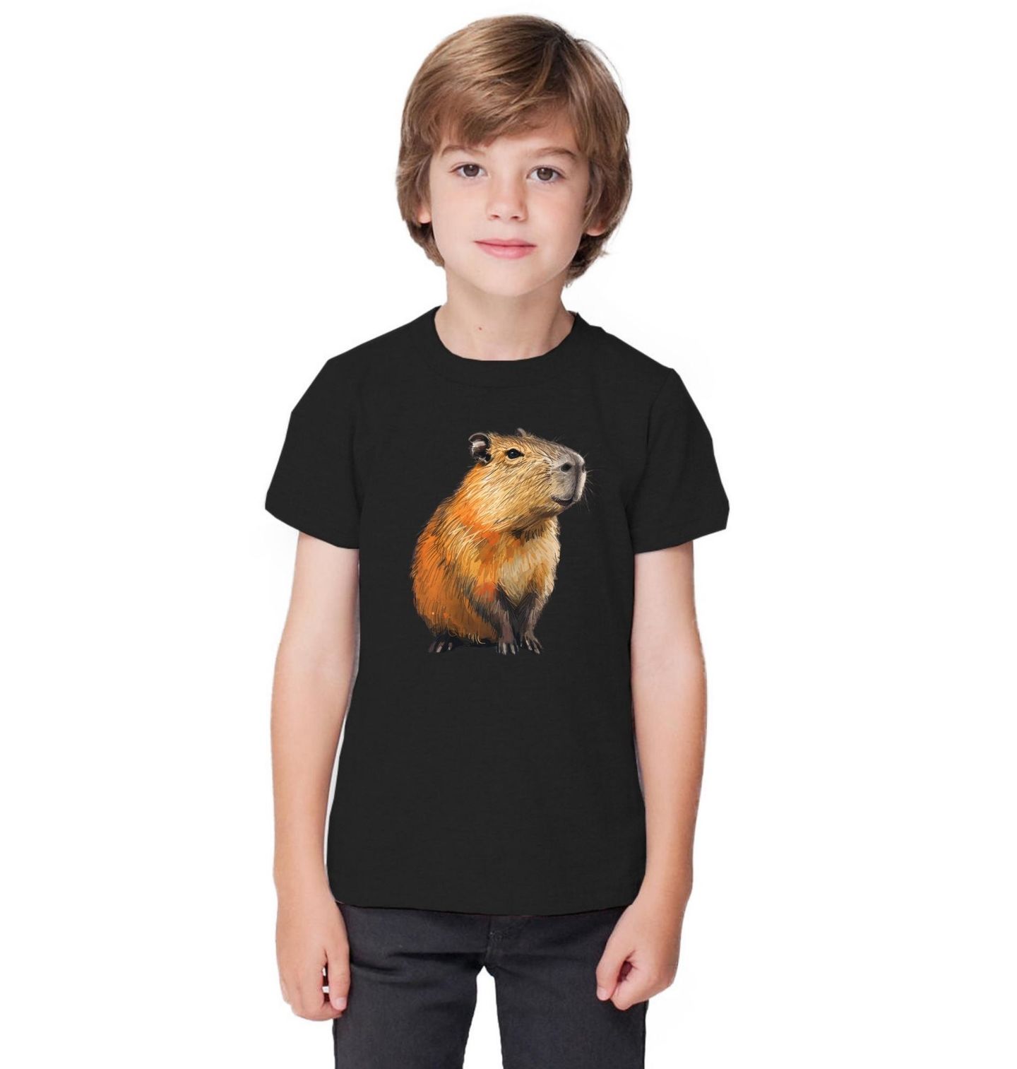 Dětské tričko Elegantní Kapybara. Kapybara jako z obrazu – originální motiv pro milovníky klidu, zvířat a stylu. Tento hlodavec je symbolem pohody, trpělivosti a nezlomné vnitřní rovnováhy. Ať už hledáš jedinečný motiv nebo chceš vyjádřit svou lásku ke zvířatům stylovým způsobem – tohle je ta pravá volba.