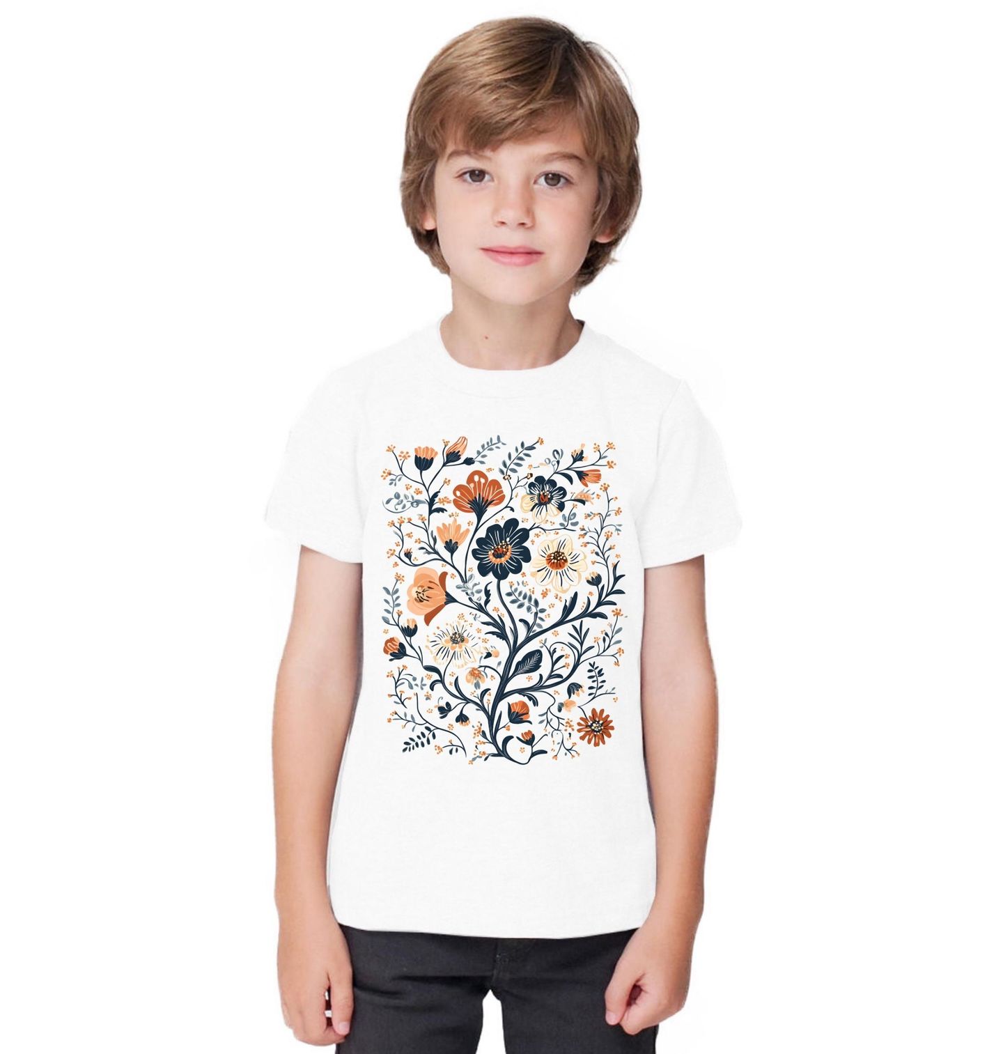 Dětské tričko Elegantní Květinový Design. Jemný a stylový motiv plný květin a rostlin v moderním ilustrativním stylu. Kombinace přírodních barev vytváří harmonický vzhled vhodný pro každodenní použití. Tento design ocení každý, kdo má rád květinové vzory, botaniku a přírodní motivy.