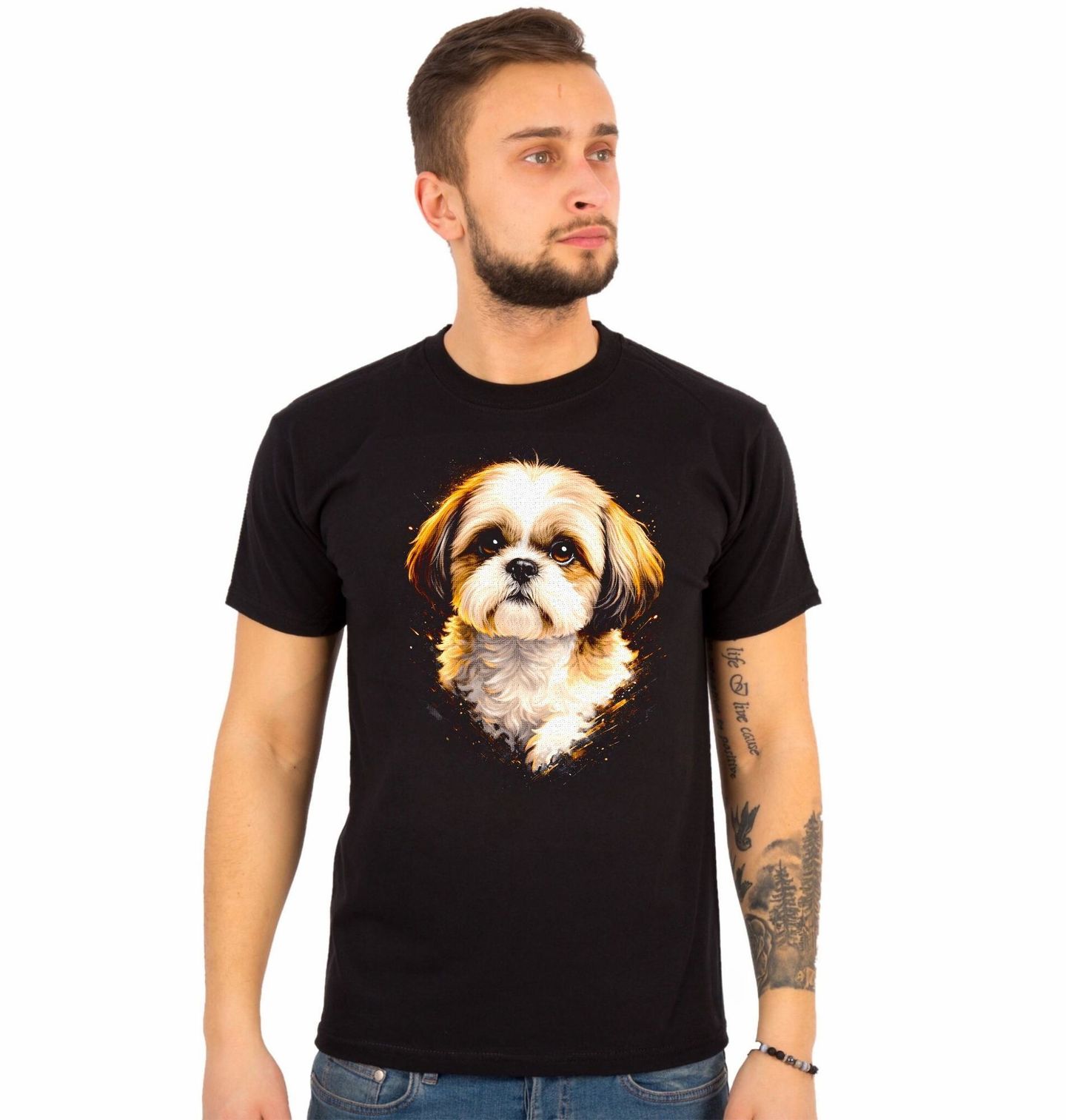 Pánské tričko Elegantní Shih-tzu. Pes jako shih-tzu je nejen skvělý společník, ale také stylový mazlíček s jedinečnou osobností. Tento motiv dokonale vystihuje jeho roztomilost i noblesu, a proto je ideální pro všechny, kdo mají slabost pro malá chlupatá plemena. Každý pejskař si tento design zamiluje díky jeho jemnému stylu a typickému výrazu tohoto oblíbeného plemene.