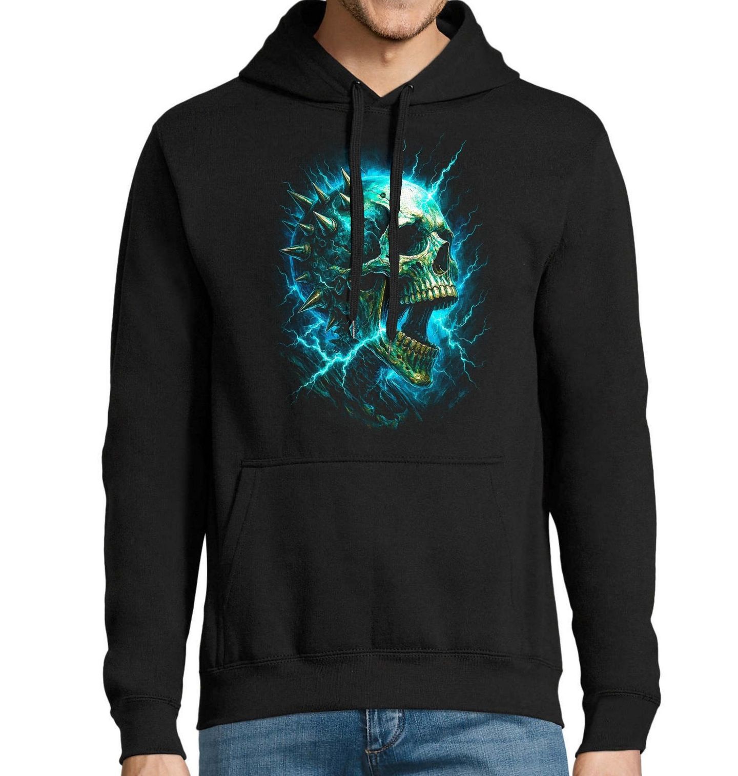 Pánská mikina Elektrizující Lebka. Temná energie, která se nedá zkrotit. Tento výrazný motiv zachycuje lebka prostoupenou silou, kterou představuje elektřina v její nejdivočejší podobě. Praskající výboje, ostré detaily a agresivní styl vytváří jedinečný design, který okamžitě přitáhne pozornost. Ideální volba pro všechny, kdo milují temnou estetiku, rebelii a sílu skrytou pod povrchem. Tento motiv není jen obrázek – je to symbol vnitřní energie, chaosu a nespoutané individuality.