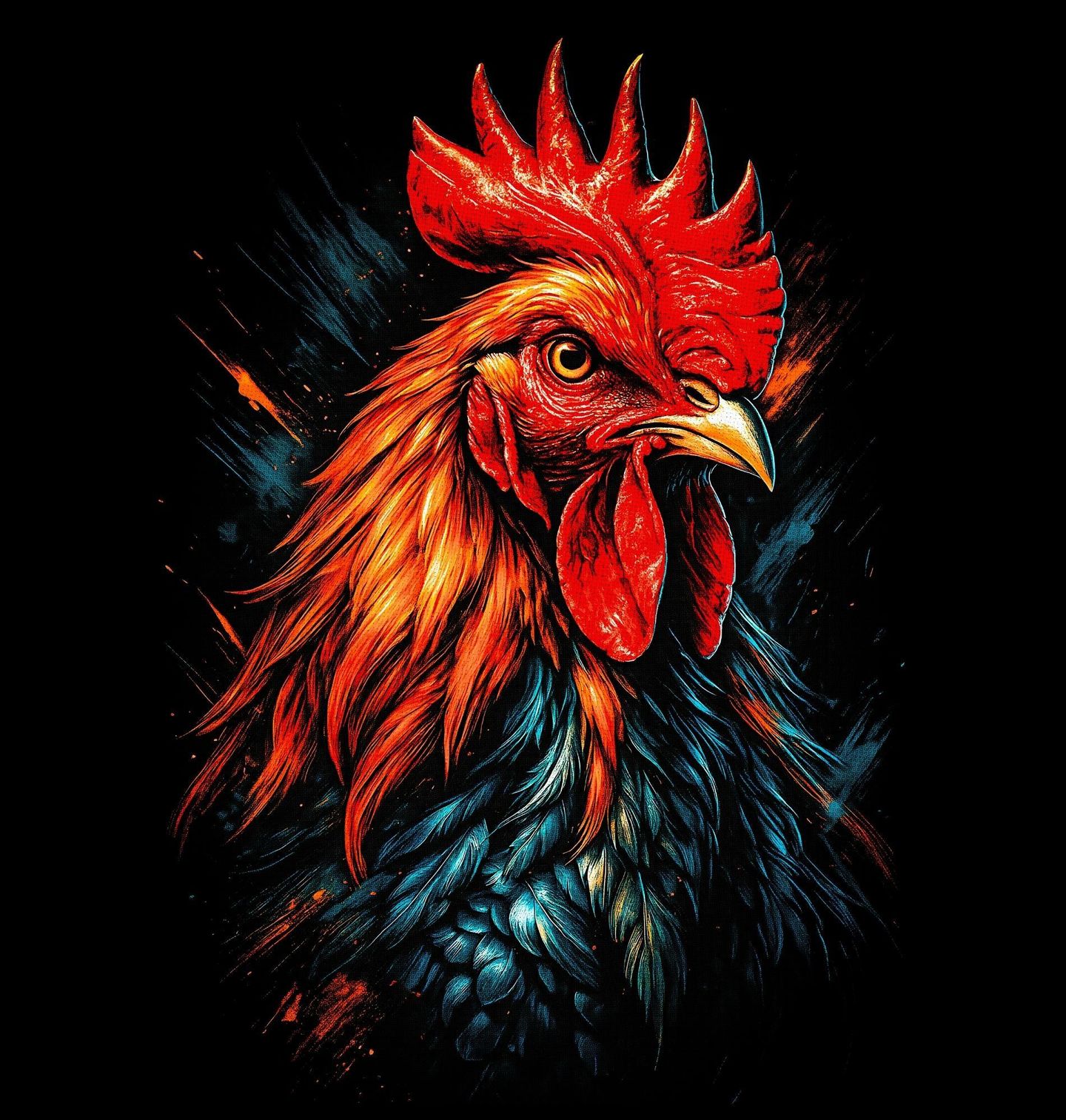 Pánské tričko Farmářský Kohout. Kohout jako pták je od nepaměti symbolem bdělosti, síly a dominance. Na farmě představuje přirozeného strážce a vůdce hejna – zde je zachycen jako skutečný král dvora. Design je ideální pro milovníky venkova, zvířat, farmářské tematiky i pro ty, kteří mají rádi výrazné a originální umění.