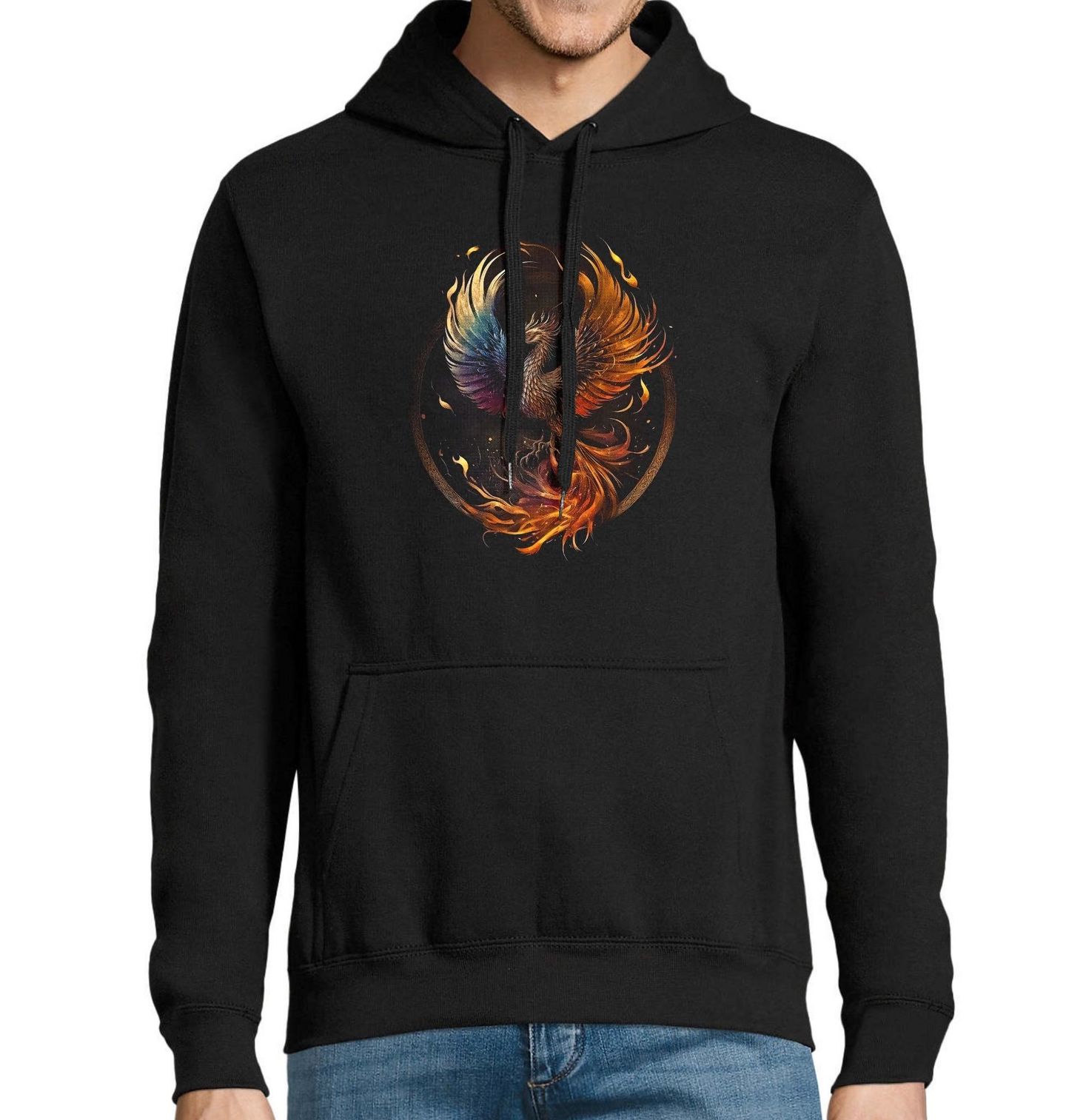 Pánská mikina Fénix v Plamenech. Mytický pták Phoenix, symbol nesmrtelnosti a znovuzrození z popela, je ztvárněn v ohnivém fantasy stylu s detailně propracovanými křídly a plameny. Tento design je ideální volbou pro milovníky tajemna, legend a silných symbolů. Tričko se skvěle hodí pro každého, kdo chce vyjádřit svou energii, odvahu a touhu po nekonečném znovuzrození.