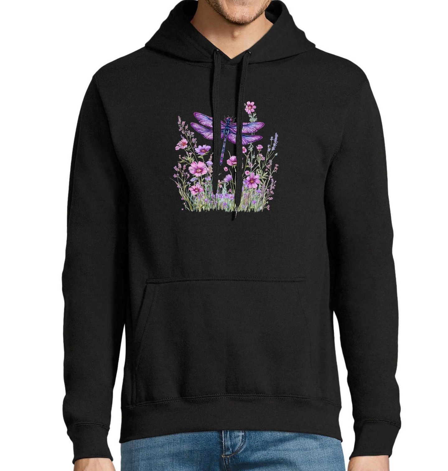 Pánská mikina Fialová Vážka mezi Lučními Květinami