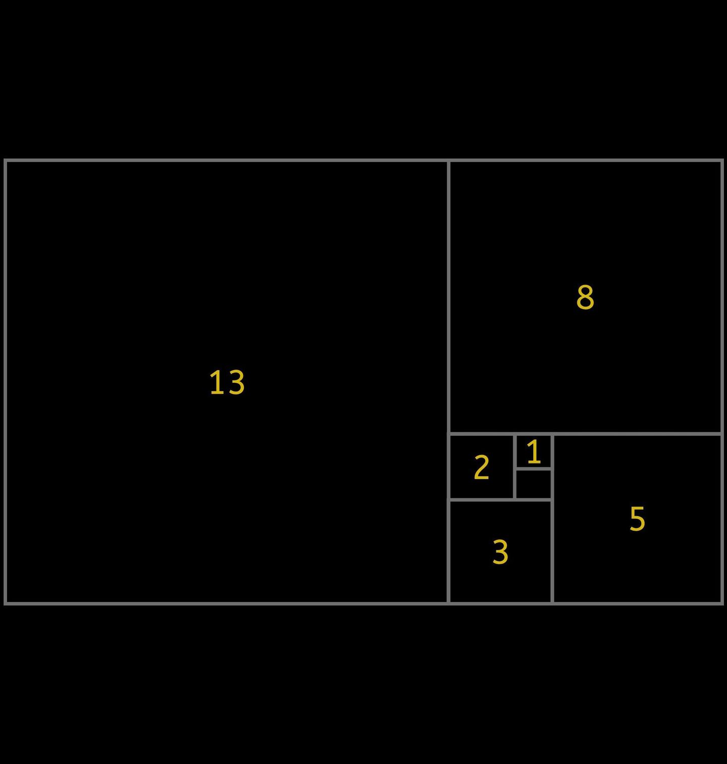 Pánská mikina Fibonacciho Čísla Posloupnosti. Na obrázku je znázorněna Fibonacciho posloupnost pomocí čtverců s délkami stran 1, 1, 2, 3, 5, 8 a 13. Každý čtverec plynule navazuje na další a společně vytvářejí základ pro známý poměr zvaný zlatý řez. Originální motiv pro všechny milovníky matematiky, logiky a chytrého designu.