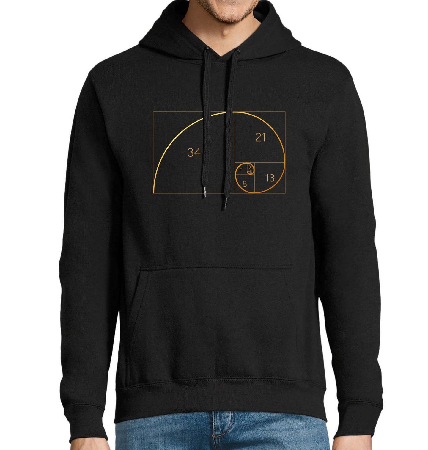 Pánská mikina Fibonacciho posloupnost. Každé číslo je součtem dvou předchozích a jejich poměr se blíží tzv. zlatému řezu. Tuto posloupnost popsal Leonardo Fibonacci ve 13. století a je krásným příkladem, jak se zlatý řez (1.618...) promítá do přírody i umění, a že i matematika může být krásná. Tričko pro všechny geeky a studenty.
