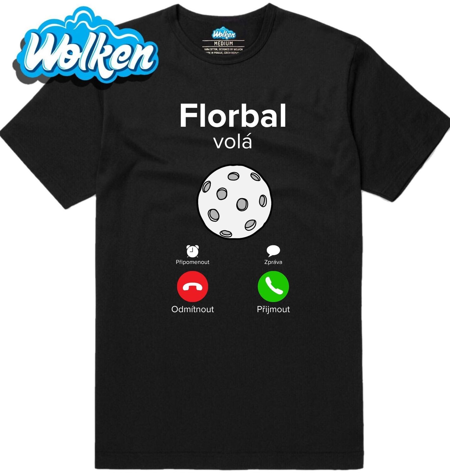 Pánské tričko Florbal volá Phone Call. Vtipný motiv napodobující příchozí hovor, kde nevolá nikdo jiný než florbal! Ideální pro všechny, kteří tento sport milují natolik, že by nikdy nepoložili. Bílý míček, známé ikony volání a text „Florbal volá“ vytvářejí originální design, který potěší hráče, fanoušky i trenéry.