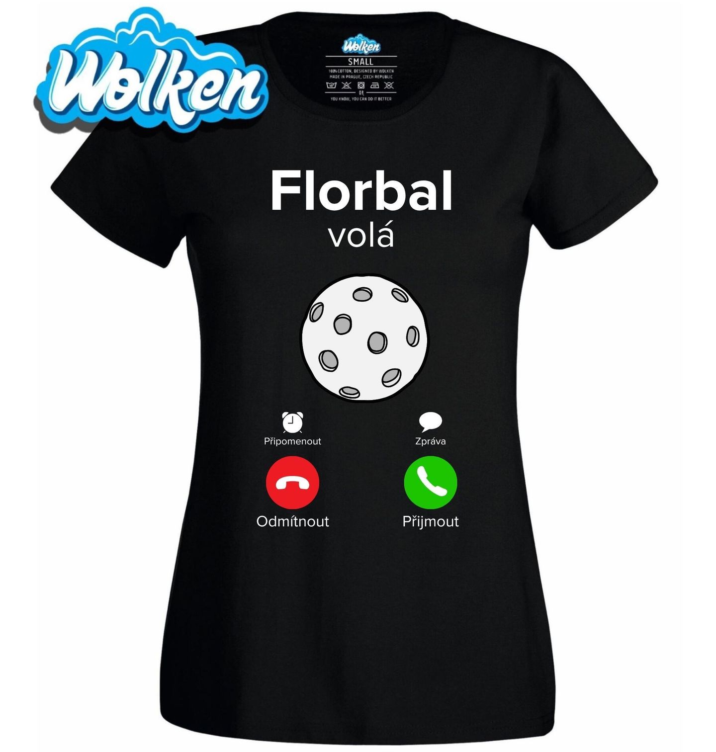 Dámské tričko Florbal volá Phone Call. Vtipný motiv napodobující příchozí hovor, kde nevolá nikdo jiný než florbal! Ideální pro všechny, kteří tento sport milují natolik, že by nikdy nepoložili. Bílý míček, známé ikony volání a text „Florbal volá“ vytvářejí originální design, který potěší hráče, fanoušky i trenéry.