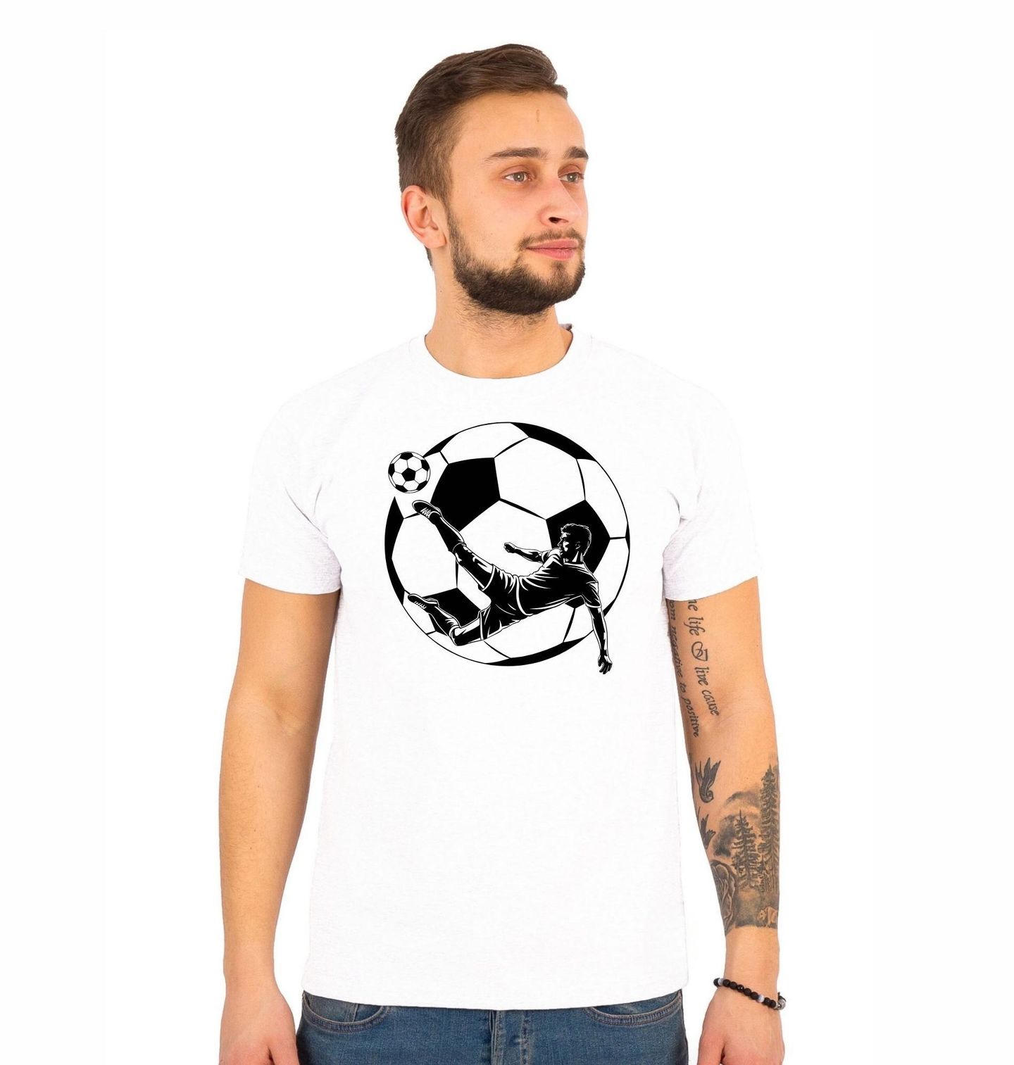 Pánské tričko Fotbalista Nůžky v Letu. Dynamický motiv zachycuje ikonický moment, kdy hráč předvádí efektní „nůžky“ – jeden z nejatraktivnějších triků, který fotbal jako vášnivý sport nabízí. Silueta hráče v pohybu spolu s velkým míčem vytváří výrazný a energický design, který okamžitě upoutá pozornost. Minimalistické černobílé provedení podtrhuje sílu okamžiku a dává vyniknout detailům, díky kterým je fotbal nejen hra, ale i umění.