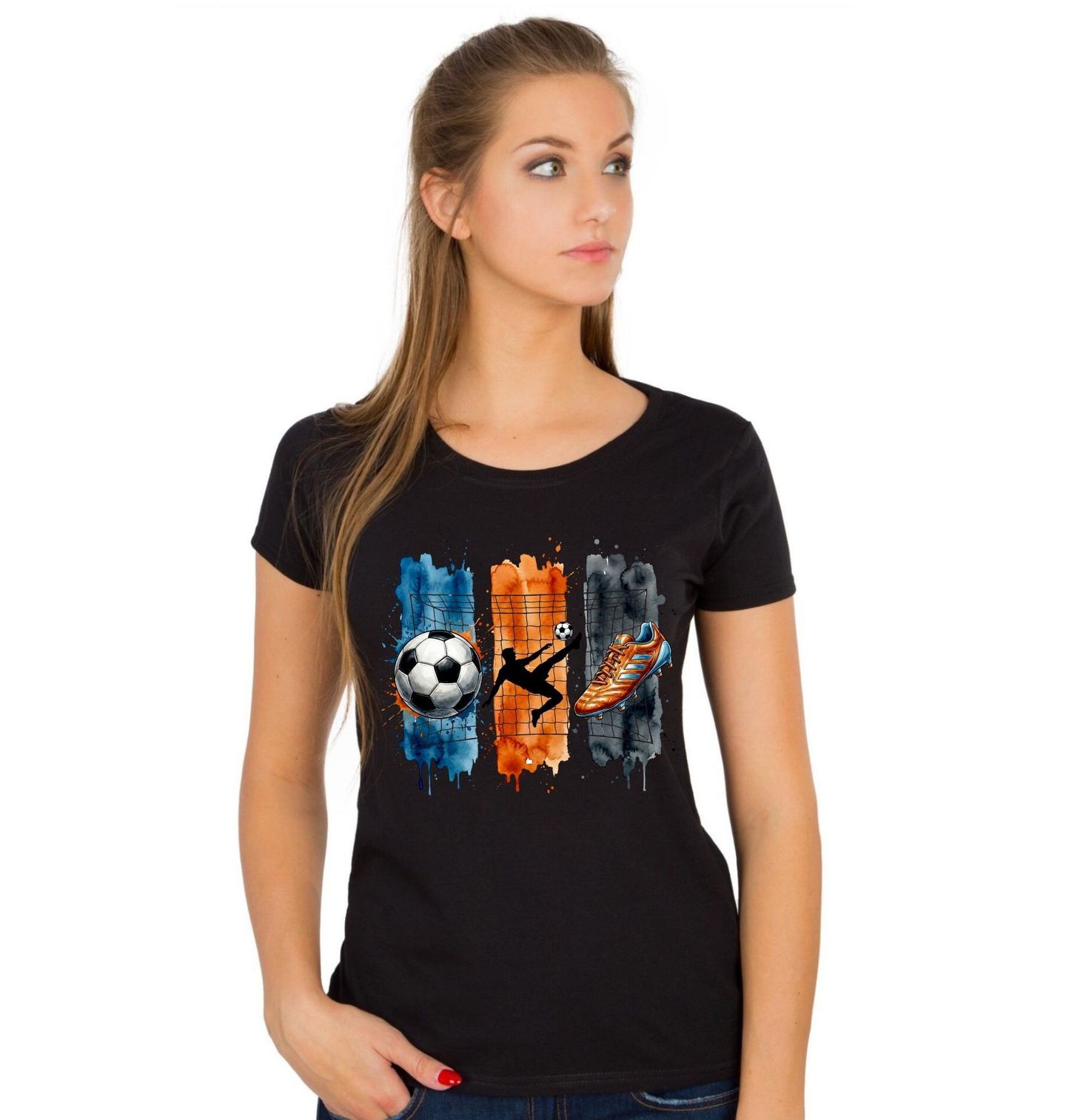 Dámské tričko Fotbalový Míč a Kopačky. Výrazný a dynamický motiv spojuje prvky, které definují fotbal jako nejoblíbenější sport na světě. Silueta hráče při akrobatickém kopu, míč i kopačka vytvářejí silnou kompozici plnou pohybu, energie a vášně. Barevné kontrasty a umělecký styl dodávají designu moderní vzhled, který zaujme každého fanouška. Tento motiv dokonale vystihuje, co znamená fotbal – rychlost, dovednost a radost ze hry, kterou nabízí každý sportovní zážitek.