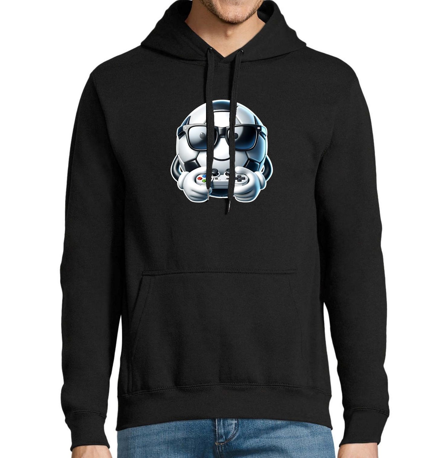Pánská mikina Fotbalový Míč Gamer v Brýlích. Roztomilý motiv, který spojuje fotbal a herní svět. Usmívající se fotbalový míč s brýlemi drží v rukou ovladač a vypadá jako opravdový gamer. Ideální pro každého, kdo miluje sport i videohry. Tento design je hravý, moderní a skvěle se hodí pro děti i dospělé fanoušky fotbalu.