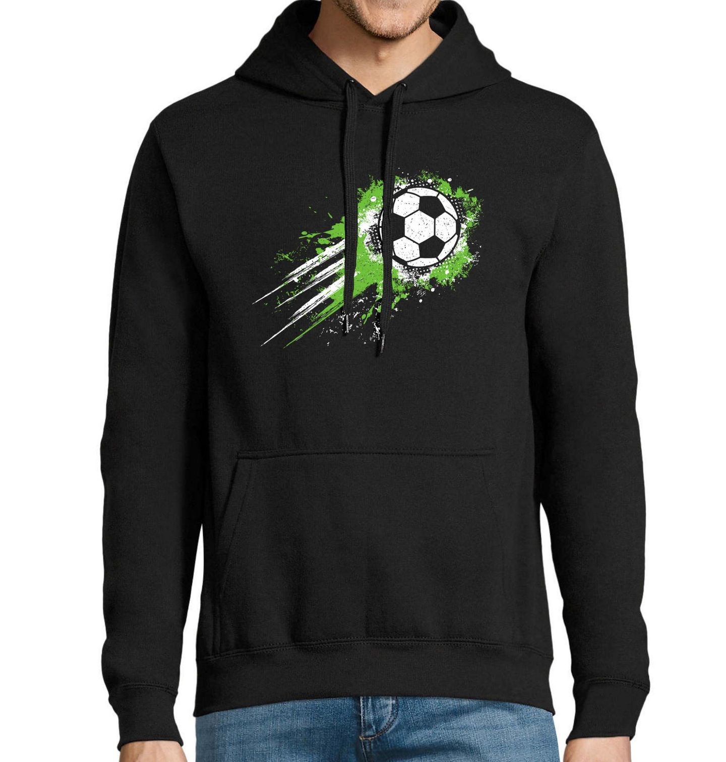 Pánská mikina Fotbalový míč v letu. Stylové tričko zelený úder je ideální pro každého fanouška fotbalu, který chce dát najevo svou vášeň pro hru. Dynamický motiv s fotbalovým míčem a zelenými šmouhami připomíná energii a rychlost skutečného zápasu. Ať už fandíte na tribuně, hrajete na hřišti nebo jen milujete sportovní módu, tohle tričko s motivem fotbalového míče vám dodá sportovní šmrnc.